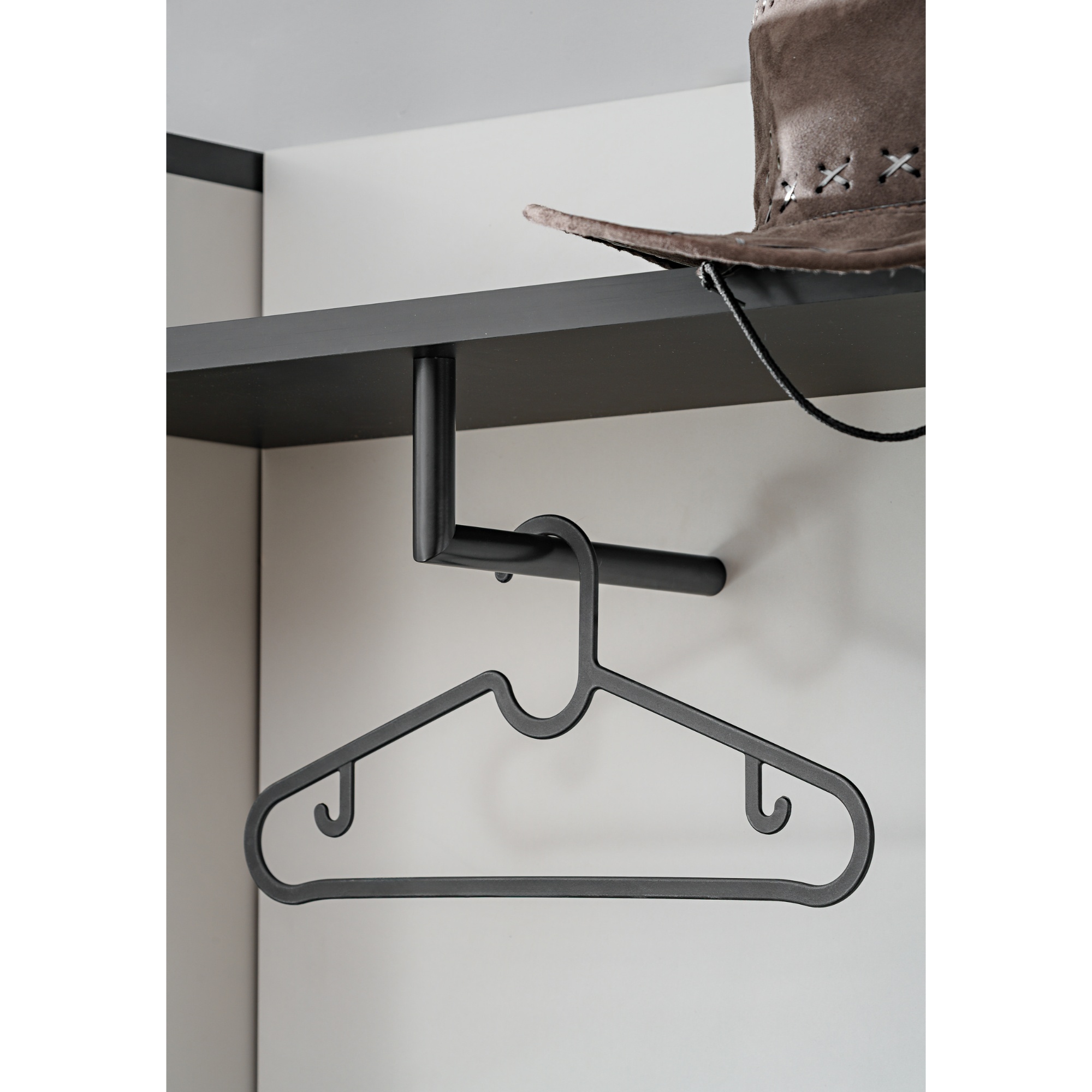 - 1 polica, 1 šatníková tyč, 2 háčiky