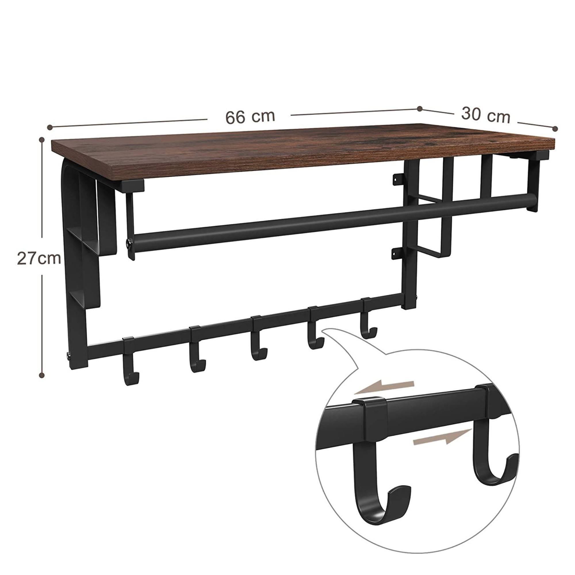 Predsieňový panel VAL vás zaujme industriálnym štýlom. Skvele sa hodí do obývacej izby, predsiene, šatne, pracovne a spálne. Celý predsieňový panel má nosnosť 40 kg, môžete si tak bez obáv odložiť veci každodennej potreby. Kovové háčiky môžete využiť na odloženie oblečenia, kabeliek, šálov, alebo kľúčov. Kovová tyč je ideálny na zavesenie vešiakov s oblečením a horná polica poslúži na vystavenie dekorácií, kníh, alebo kvetov.