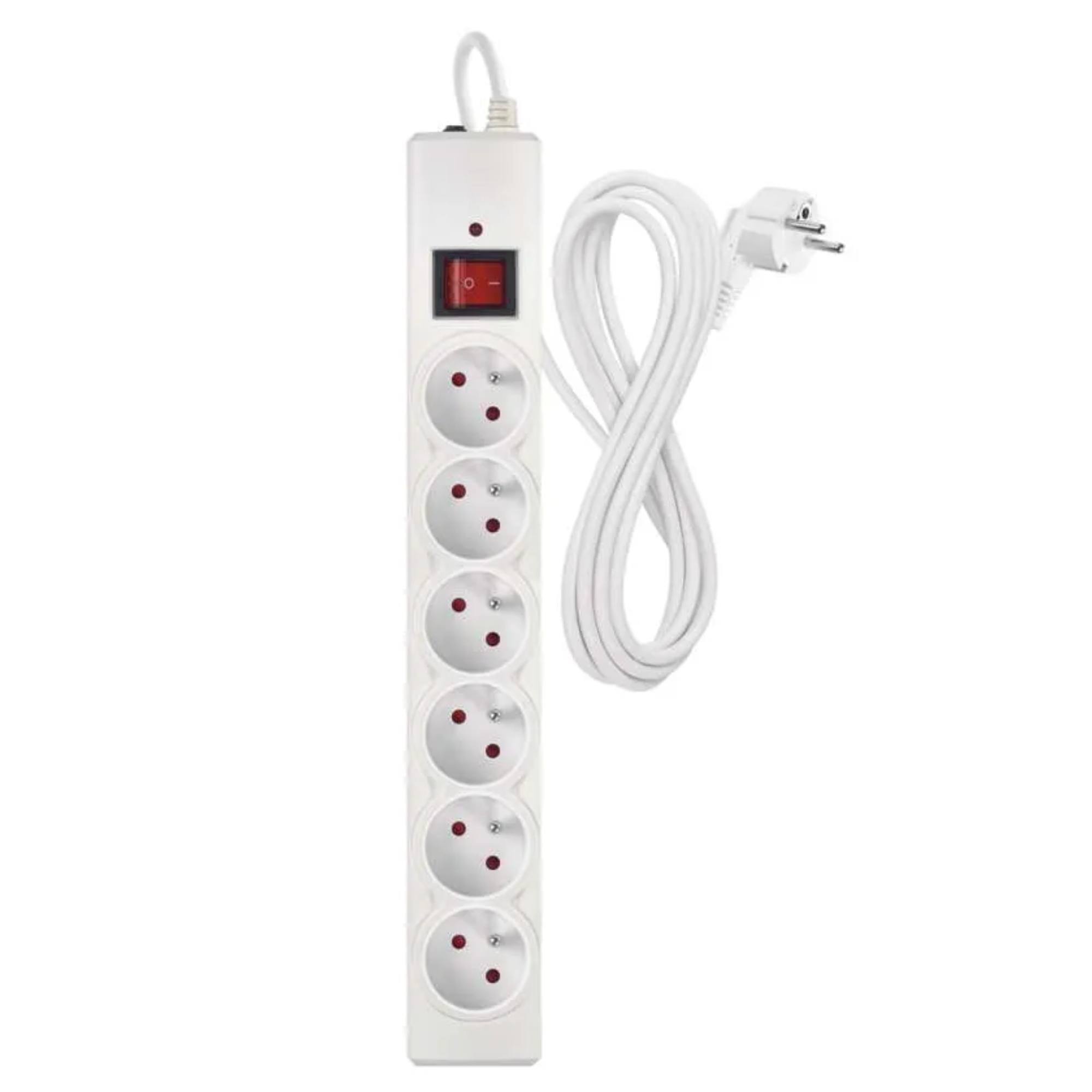 Prepäťová ochrana P54016/19 - biela, 6 zásuviek, dĺžka 3 m, absorpcia 380 J