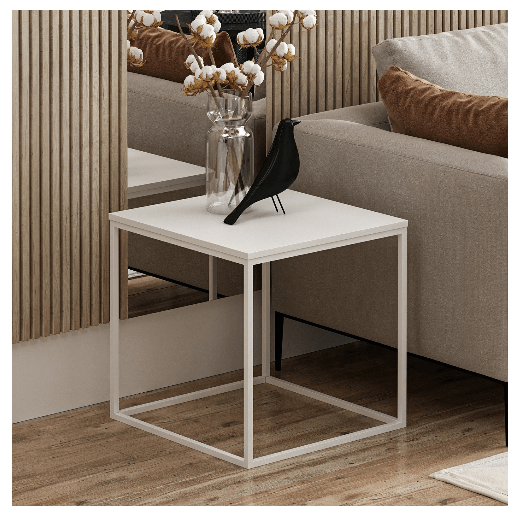 Minimalistický prístavný stolík BASAK hravo zapadne do každej domácnosti.