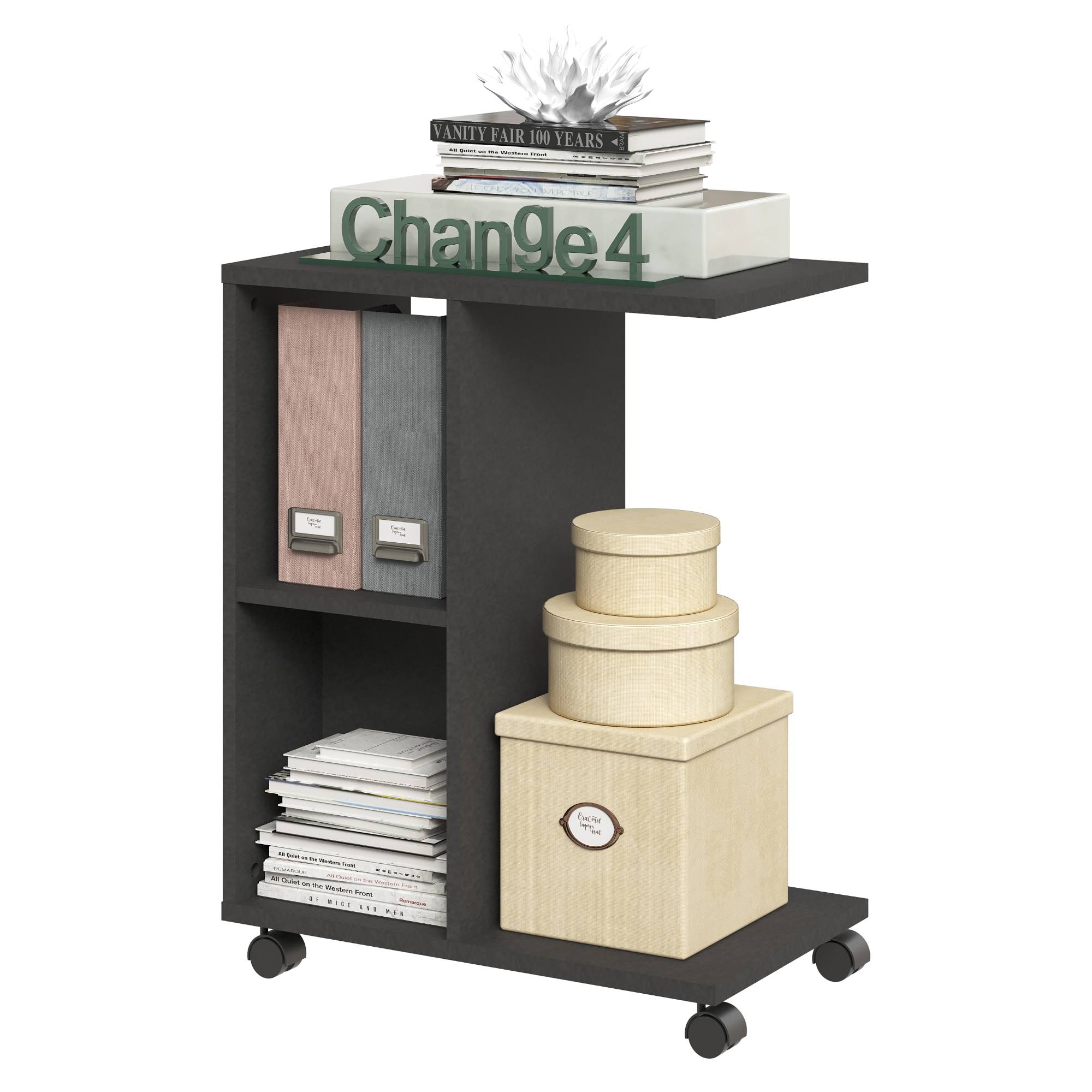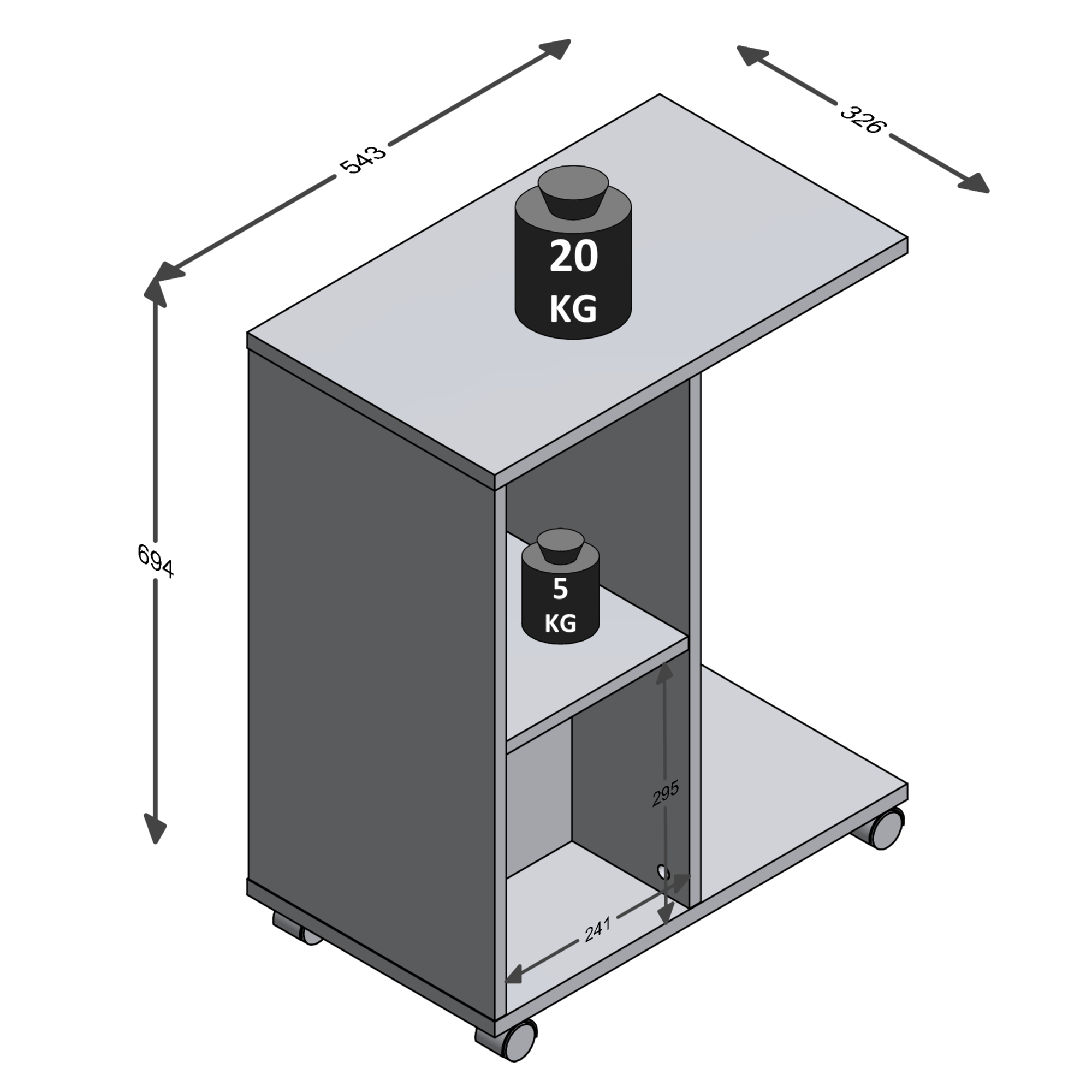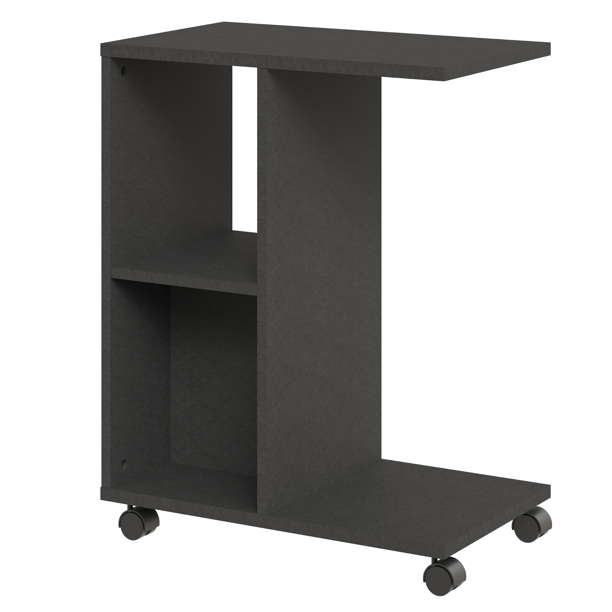 Okrem hornej dosky disponuje stolík aj 1 vloženou policou, vďaka čomu poskytne dostatok odkladacieho priestoru na všetky potrebné drobnosti. Aby sa s ním ľahšie manipulovalo, je vybavený praktickými kolieskami.