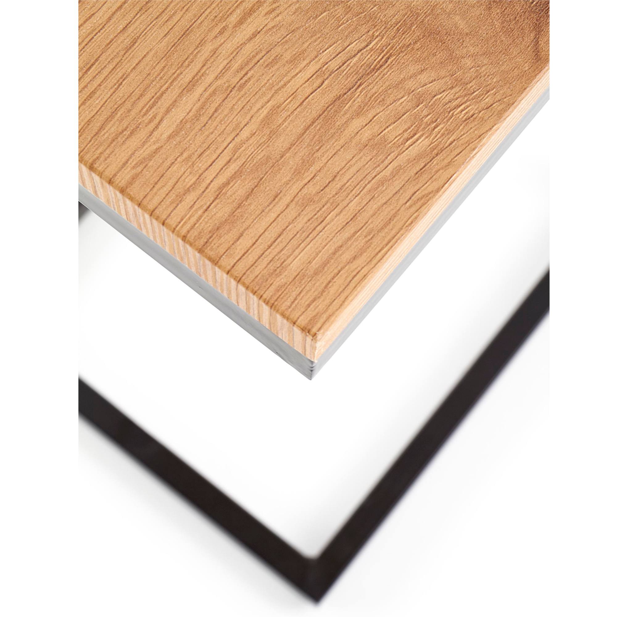 Jednoduchý, ale moderný, to je prístavný stolík DAIMON. Ako pomocník sa hodí, vďaka svojim rozmerom, aj do menšieho interiéru. Doska stola je kvalitne spracovaný MDF dyhovaný drevený materiál. Stabilitu zaistí práškovo lakovaná kovová konštrukcia. Pre lepšiu manipuláciu má stolík na podnoži kovové podpery. Doplňte si pracovňu, predsieň alebo obývaciu izbu o tento šikovný prístavný stolík DAIMON.