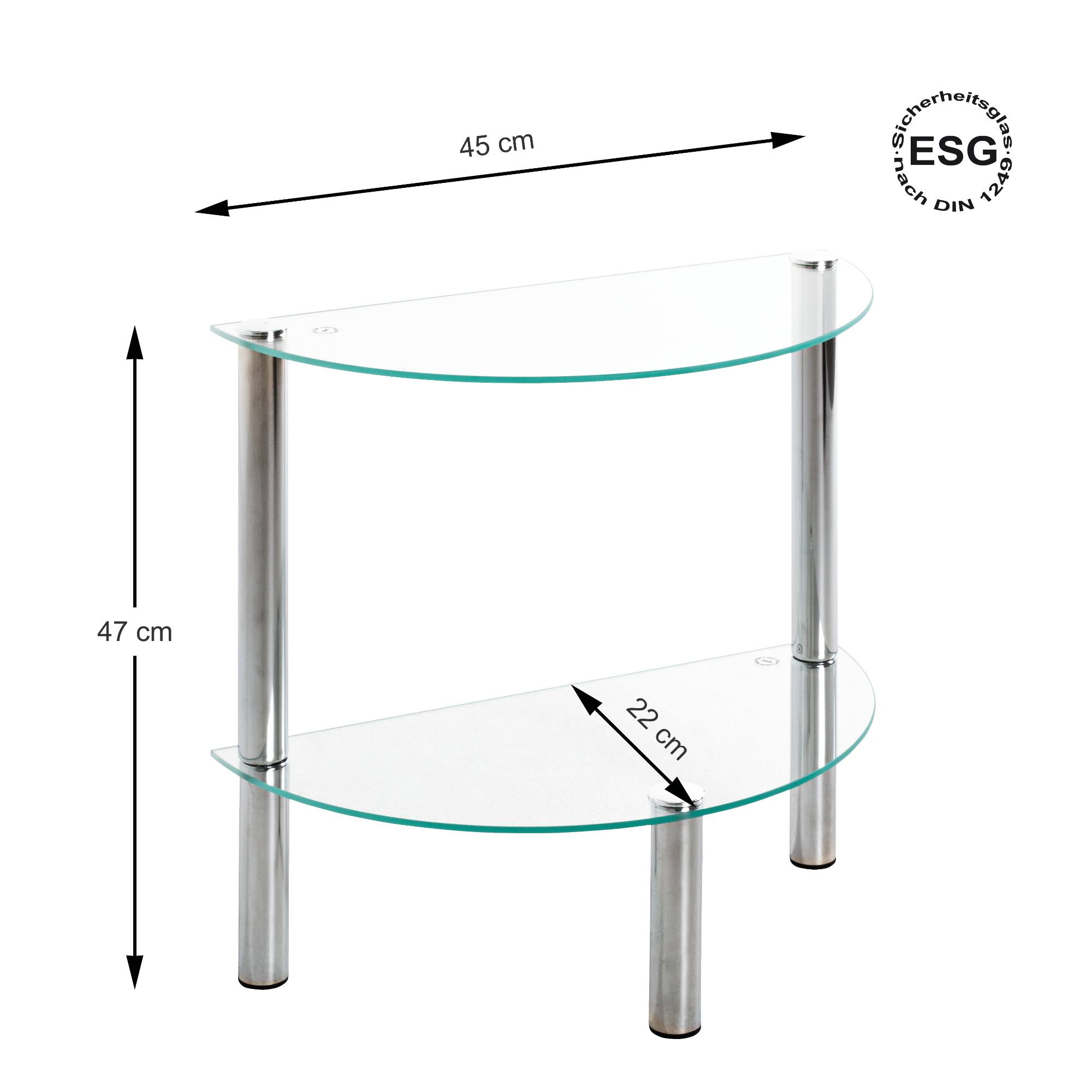 Prístavný stolík EMDEN - sklo/chróm, polkruh