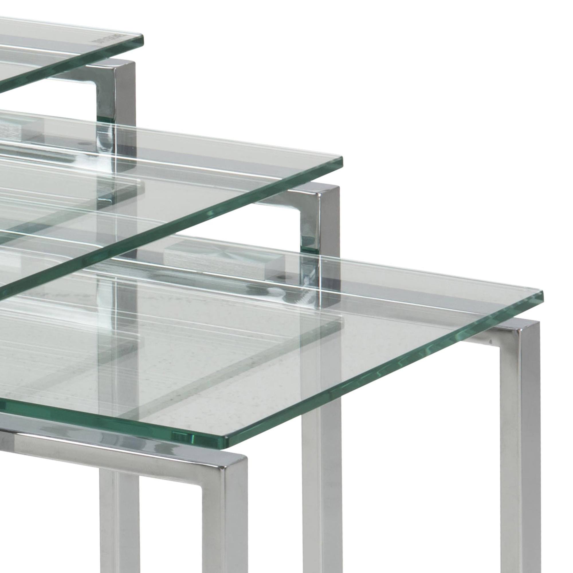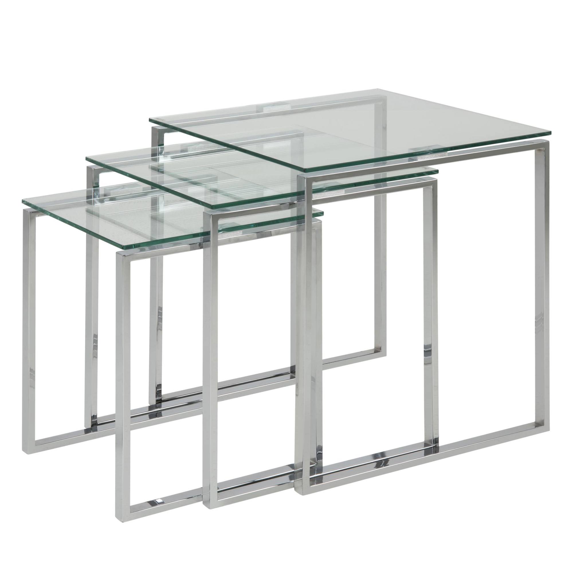 Prístavný stolík KATRINE I - priesvitná/chróm, sada 3 ks