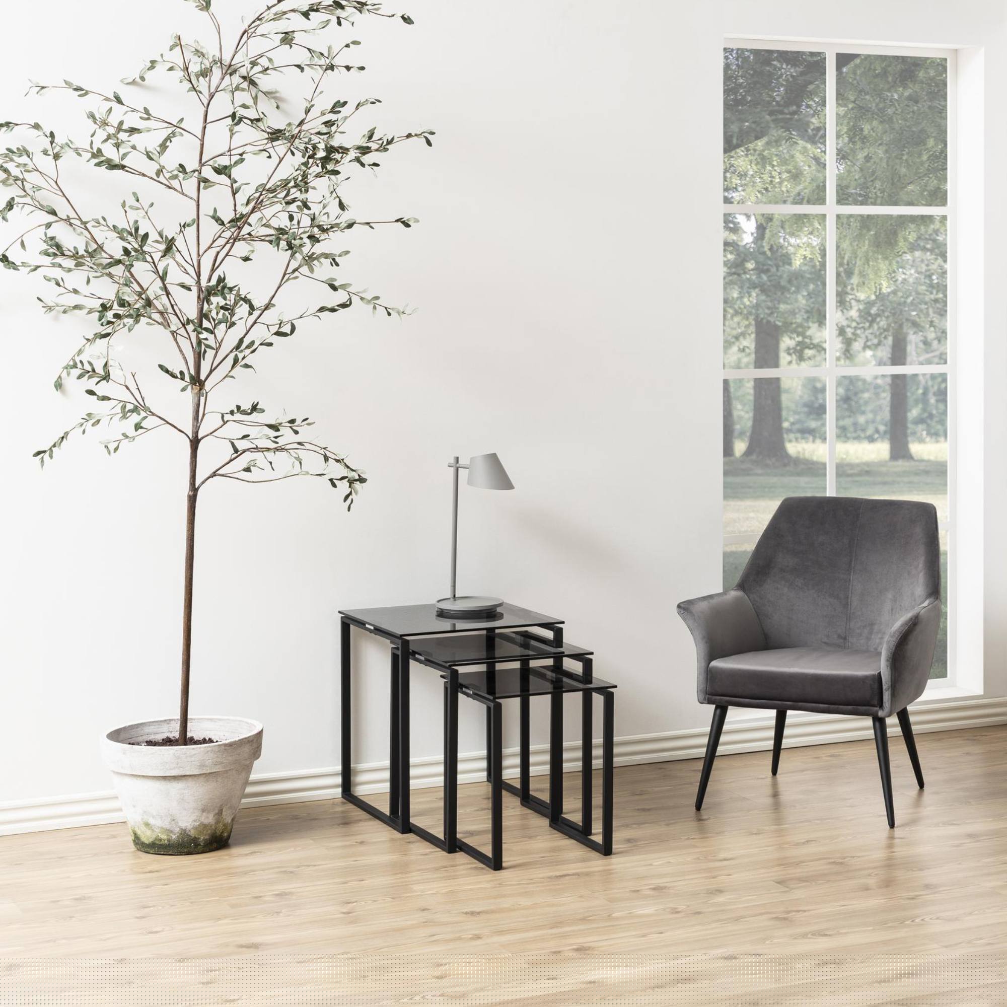 Prístavný stolík KATRINE I - sivá/čierna, sada 3 ks