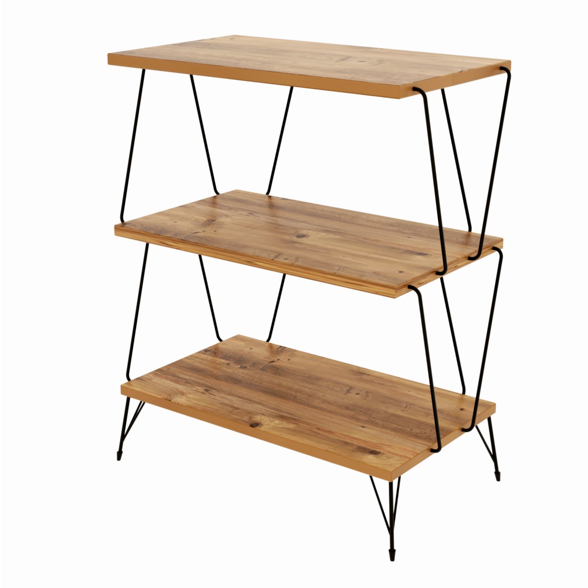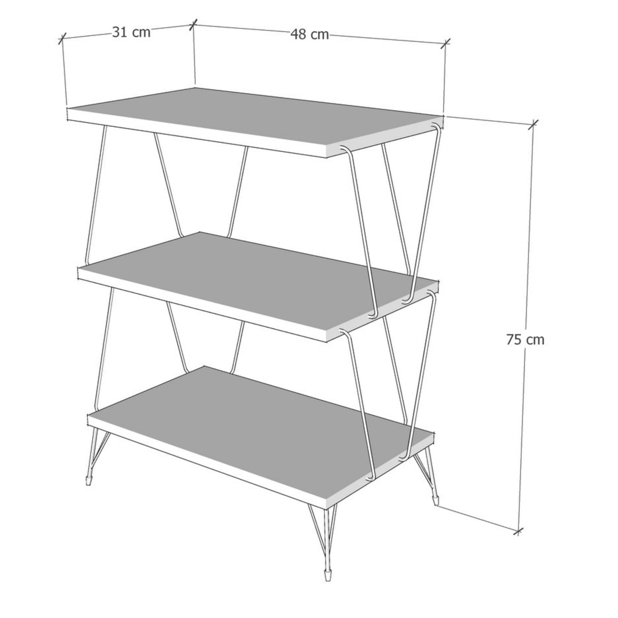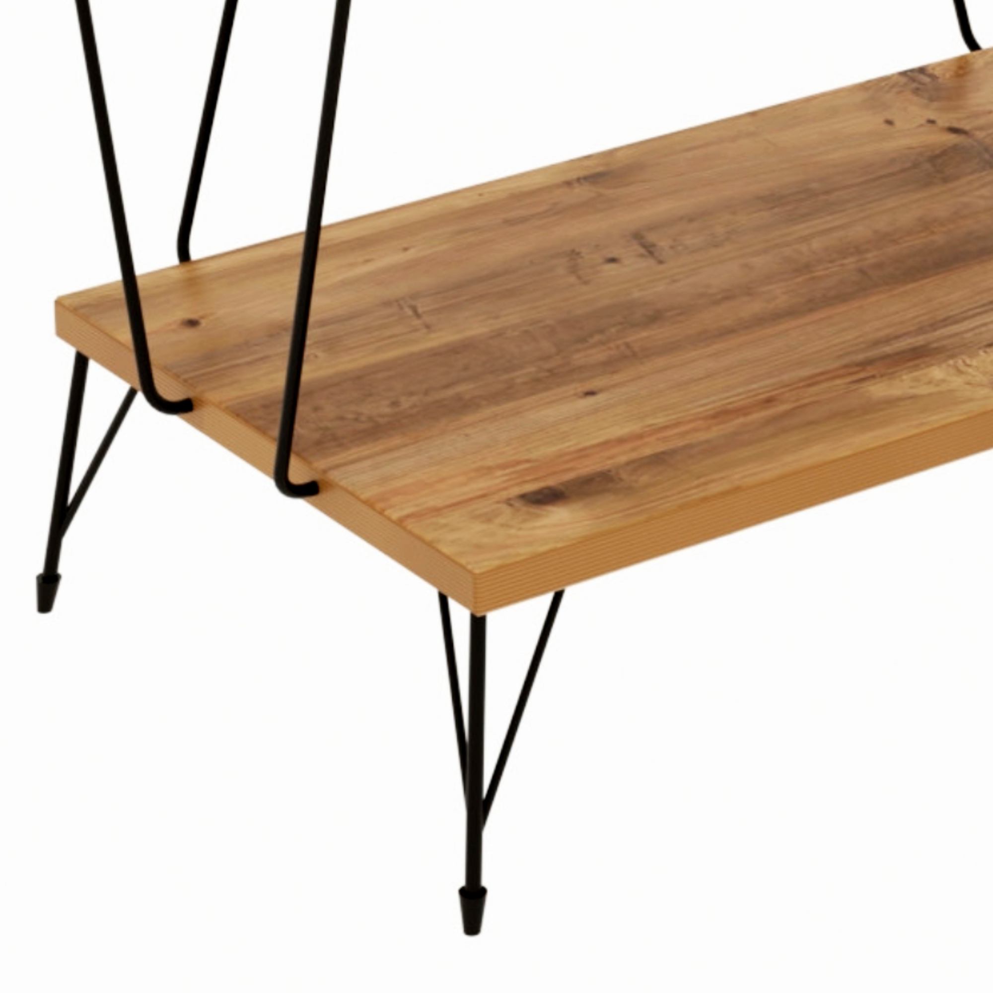 Jeho police tvorí drevený materiál s laminovaným povrchom v dekore borovice, ktorý si rýchlo obľúbite pre jeho ľahko udržiavateľný povrch. Kovové prúty v čiernom laku celkový vzhľad odľahčujú a vytvárajú tak stabilný, nevšedný celok.