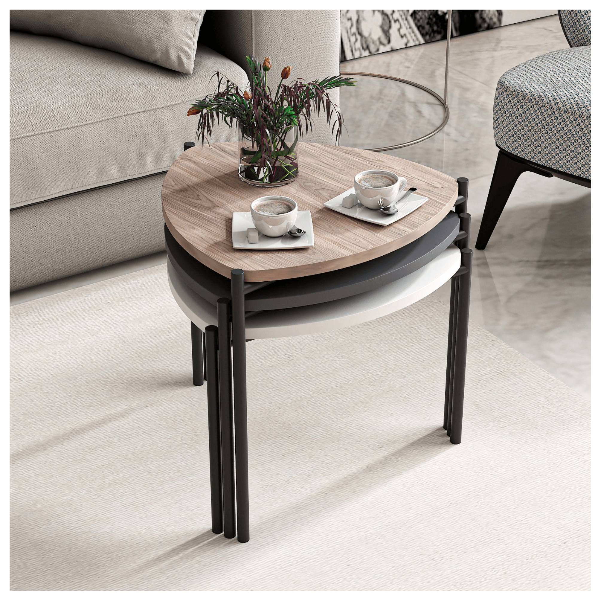 Súprava troch prístavných stolíkov LENNY hravo zvýrazní štýl každej modernej domácnosti.