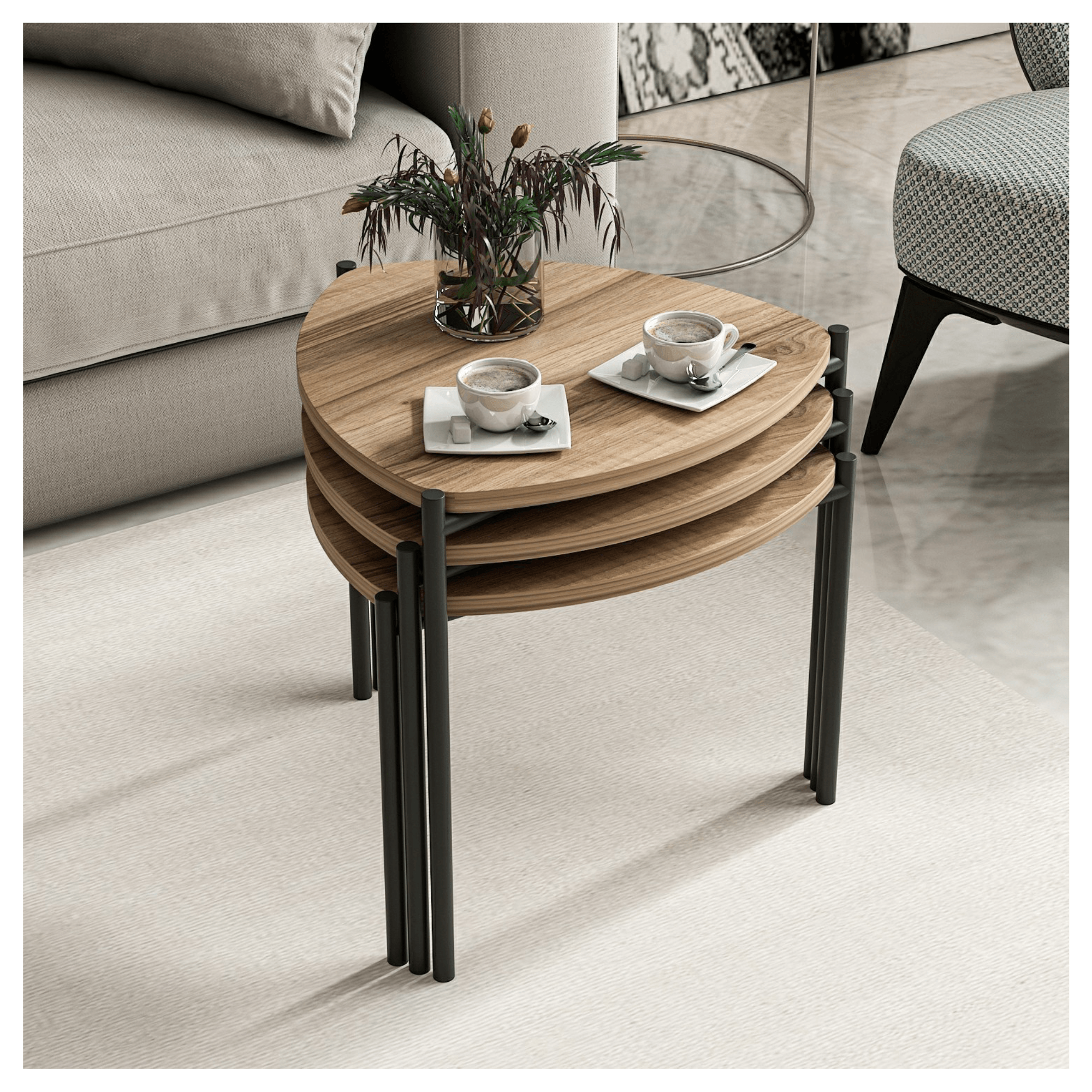 Súprava troch prístavných stolíkov LENNY hravo zvýrazní štýl každej modernej domácnosti.