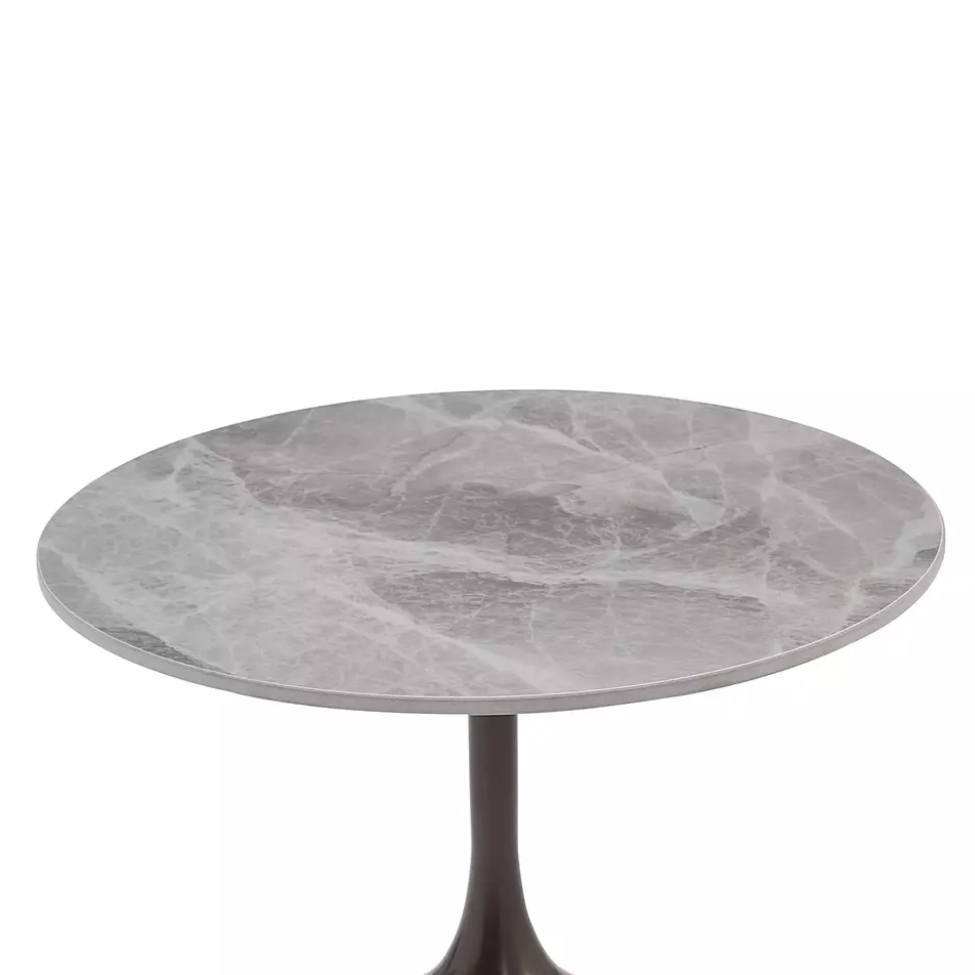 Za svoju stabilitu vďačí tento stolík svojej pevnej stredovej nohe z kovu. Hornú dosku, ktorá je vyrobená z kvalitnej keramiky, zdobí štýlový dekor mramoru.