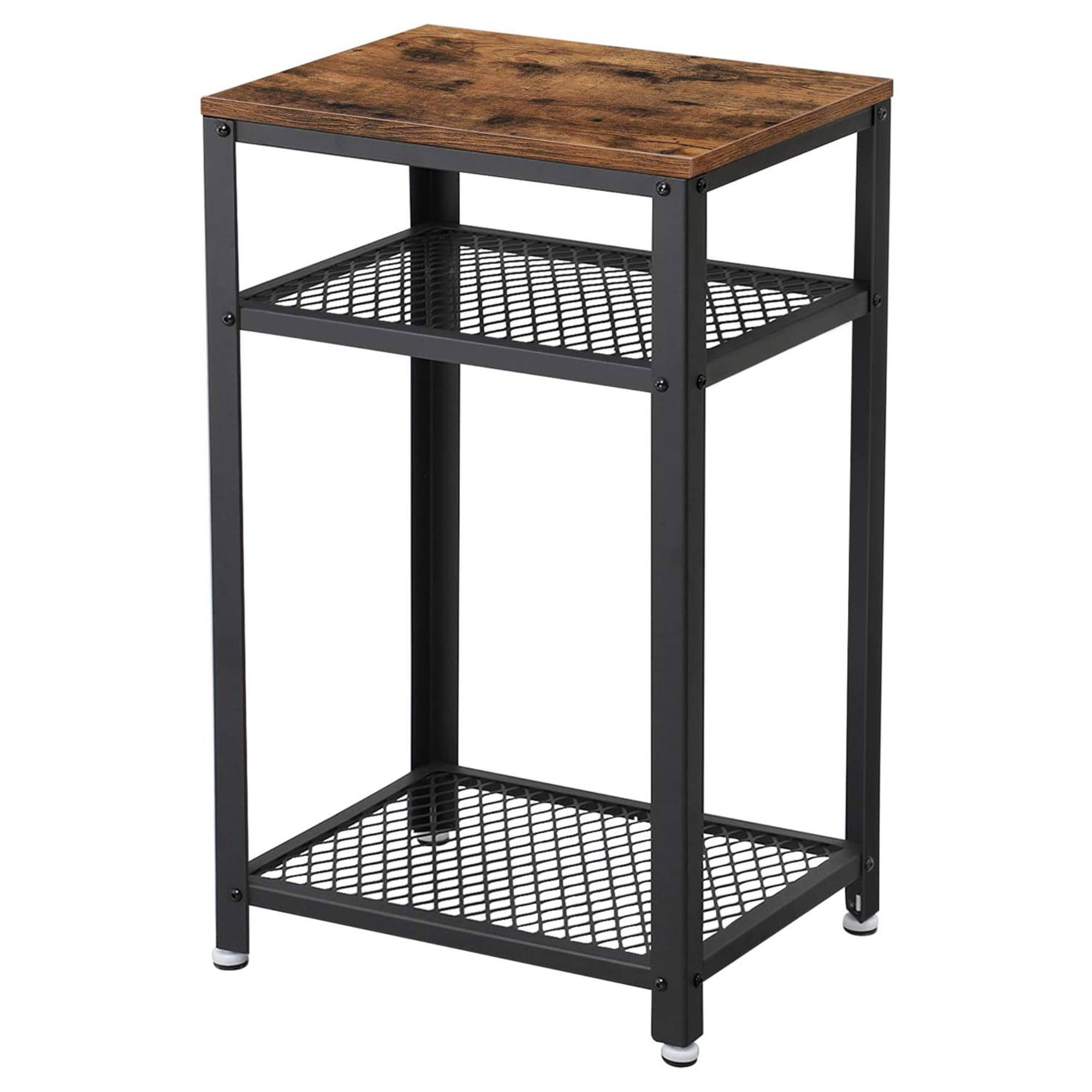 Dokonalý doplnok pre váš priemyselne ladený interiér v podobe odkladacieho stolíka RAUMO. V jeho vzhľadu vládne jednoduchosť a atraktivita zároveň. Je kombináciou kovu a hornej police z drevotrieskovej dosky v dekore tmavého dreva. Sieťované kovové police spolu s nohami tvoria stabilnú konštrukciu doplnenú o nastaviteľné podložky chrániace vašu podlahovú krytinu. Tento stolík skvele poslúži všade, kde potrebujete doplniť miesto o odkladaciu plochu a nechcete príliš obmedziť váš osobný priestor.