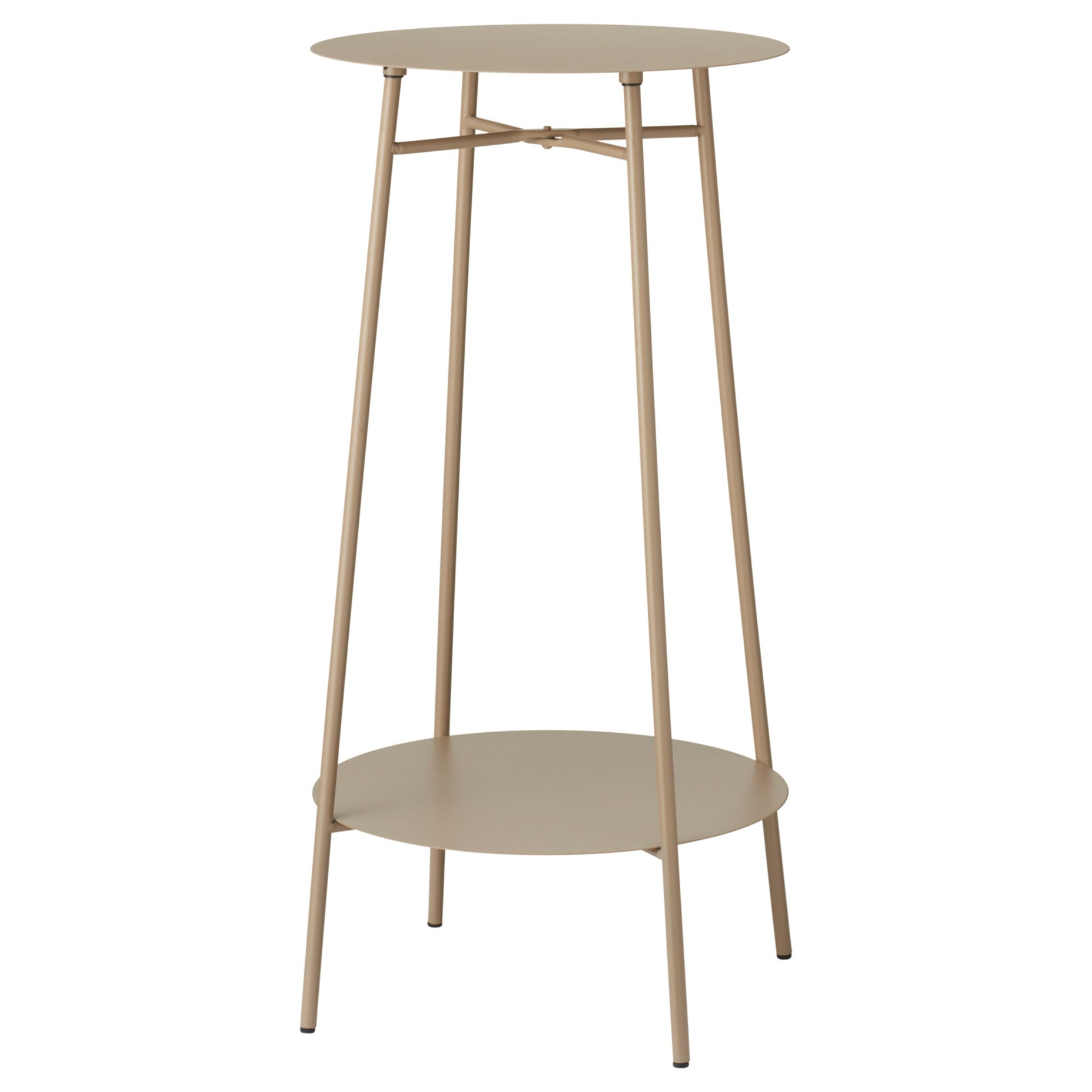 Má kovovú konštrukciu s plastovými nožičkami. Je vybavený úložnou policou, ktorá je ideálna na odloženie časopisov, kníh či dekorácií. Svojím okrúhlym vyhotovením sa hodí aj do menších miestností na vystavenie rastlín alebo odloženie nápojov pri sedacej súprave. S nosnosťou 10 kg je ideálnym doplnkom do vašej obývacej izby. Jeho minimalistický dizajn vynikne v rade interiérov.