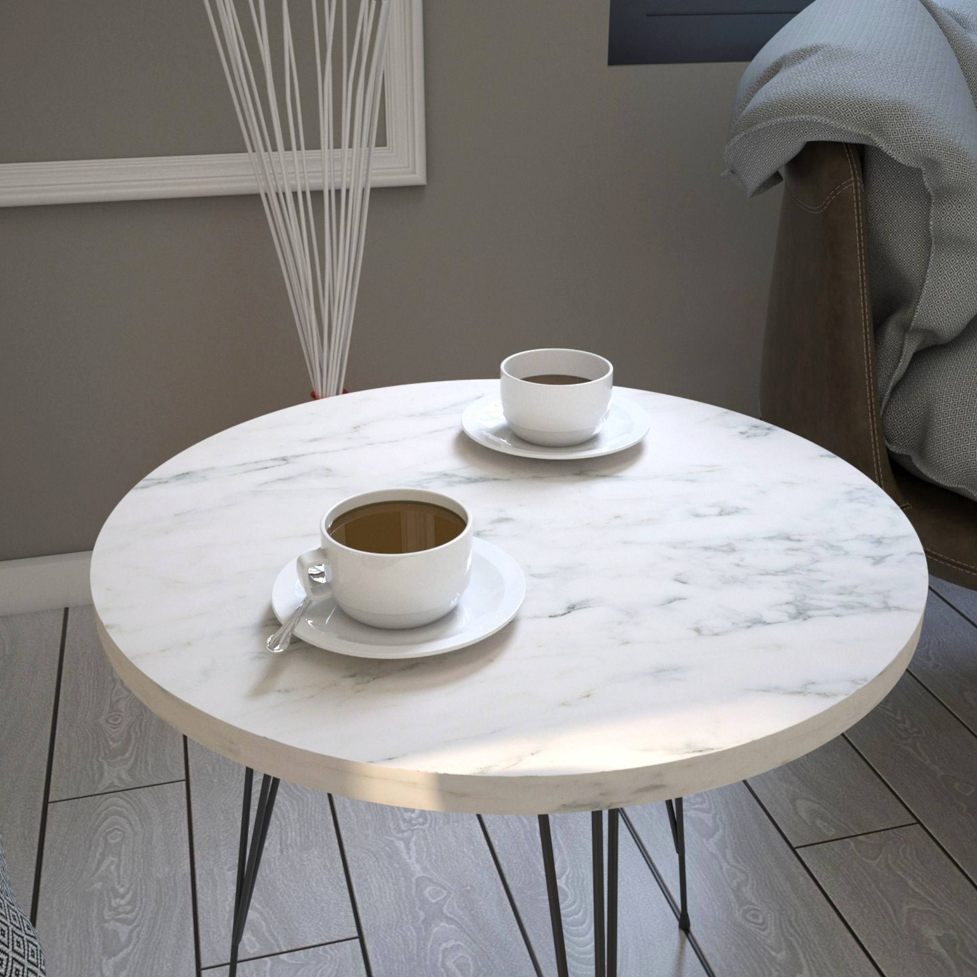 Prístavný stolík SANDALF - biely mramor/čierna
