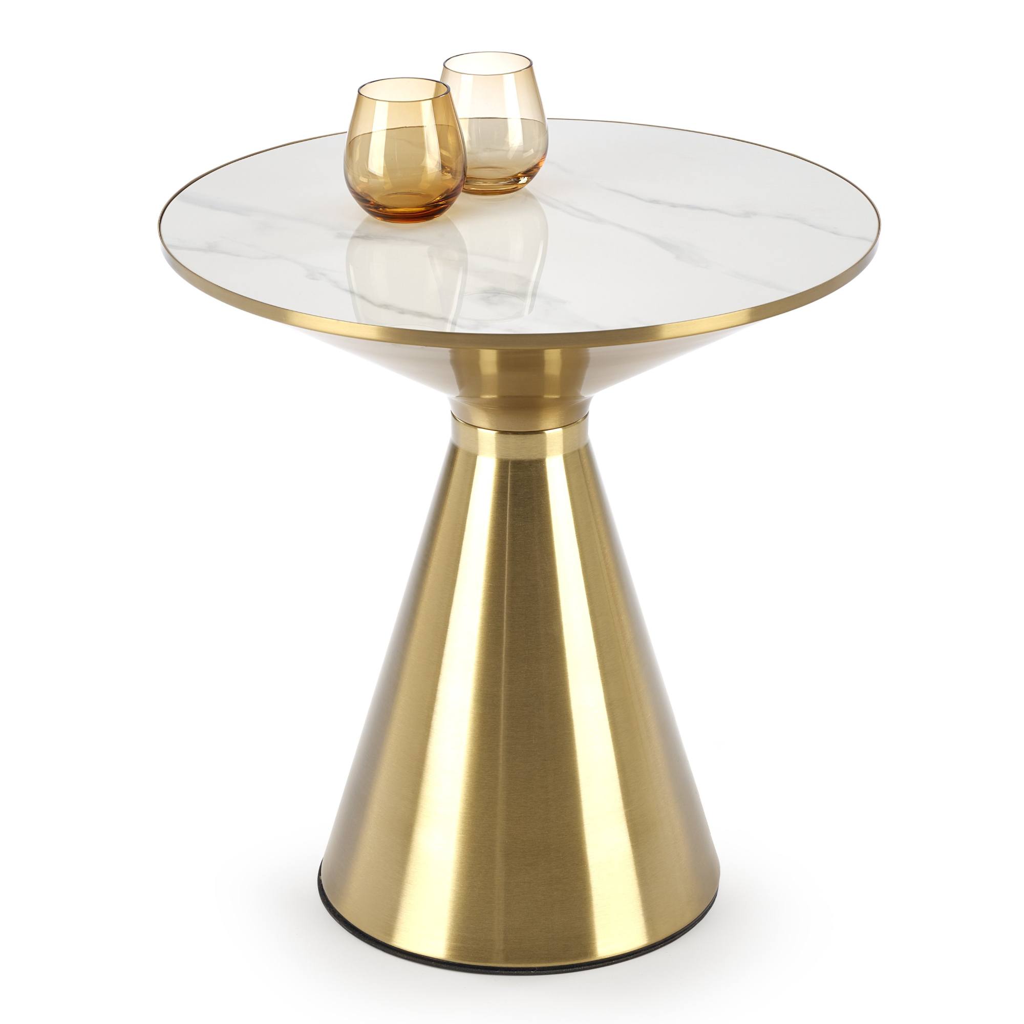 Prístavný stolík TRABICO - biely mramor/zlatá