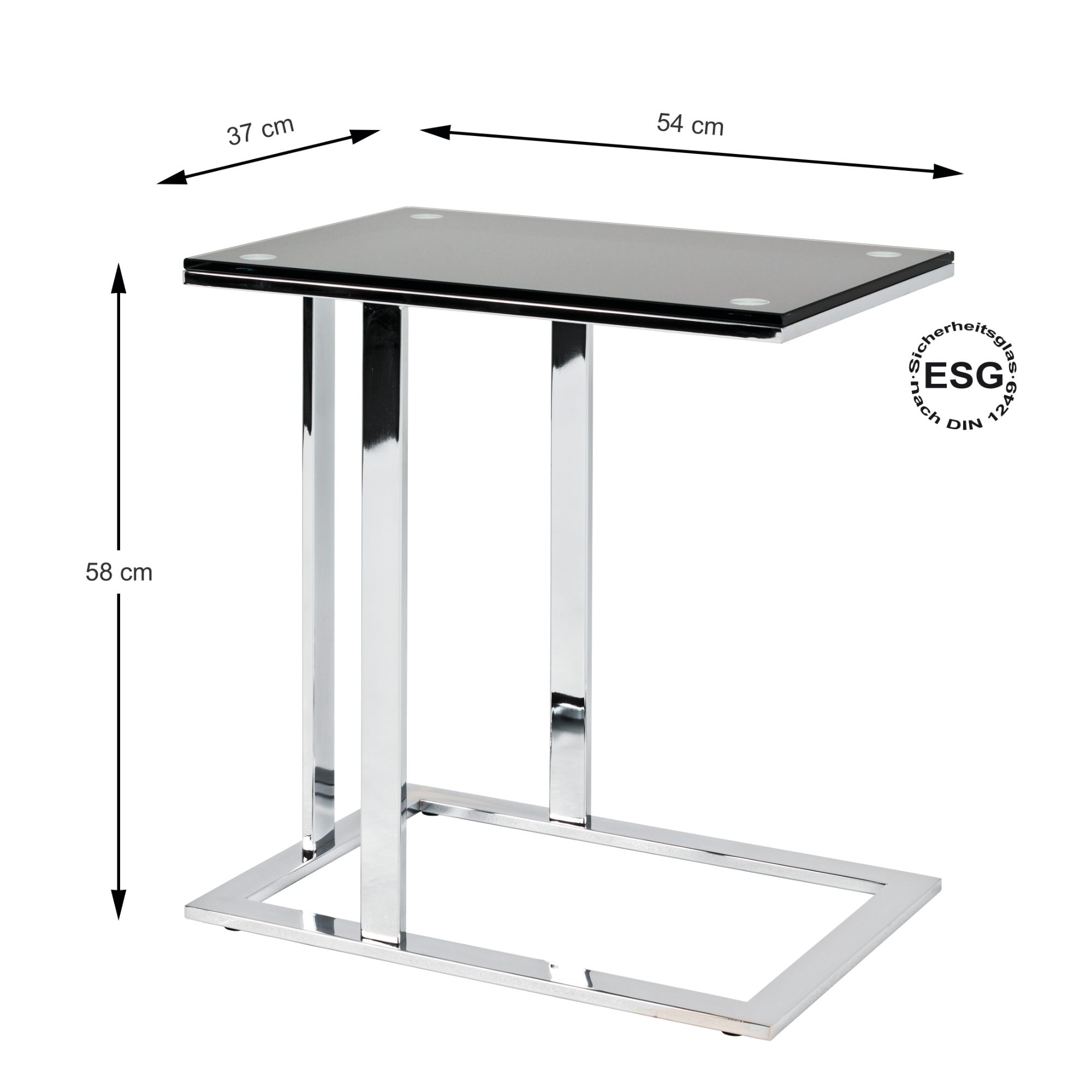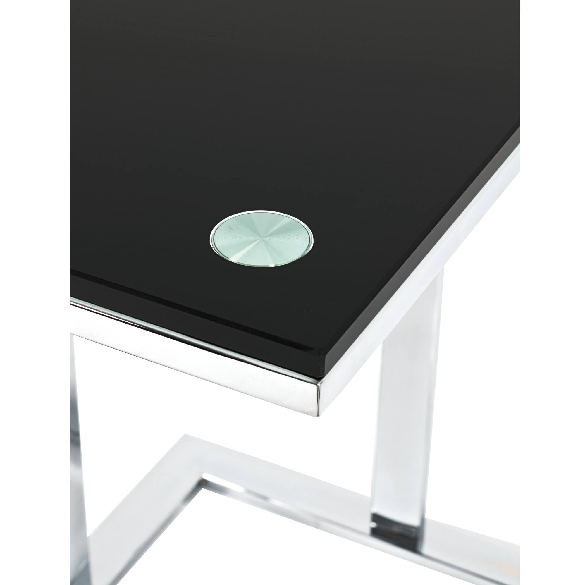 Rám je vyrobený z pochrómovanej ocele, ktorá vyniká svojim lesklým vzhľadom. Čierna lakovaná horná doska z bezpečnostného skla pridáva na elegancii. Stolík je ideálny na servírovanie nápojov alebo ako praktický úložný priestor do obývacej izby, kancelárie či jedálne.