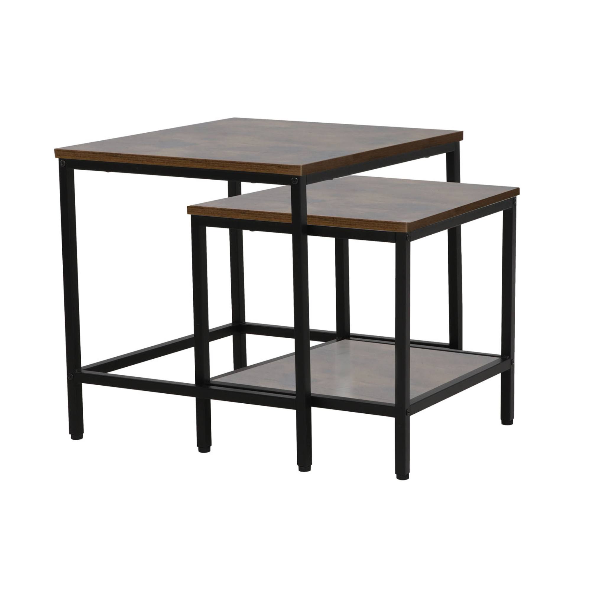Dosky sú vyrobené z laminovaného dreveného materiálu, ktorý sa vyznačuje ľahkou udržiavateľnosťou aj dlhou životnosťou. Maximálnu stabilitu zaisťuje konštrukcia z kovu v čiernej matnej úprave. Vďaka odlišným rozmerom je možné menší stolík zasunúť pod väčší, čo v prípade potreby ušetrí cenné miesto.