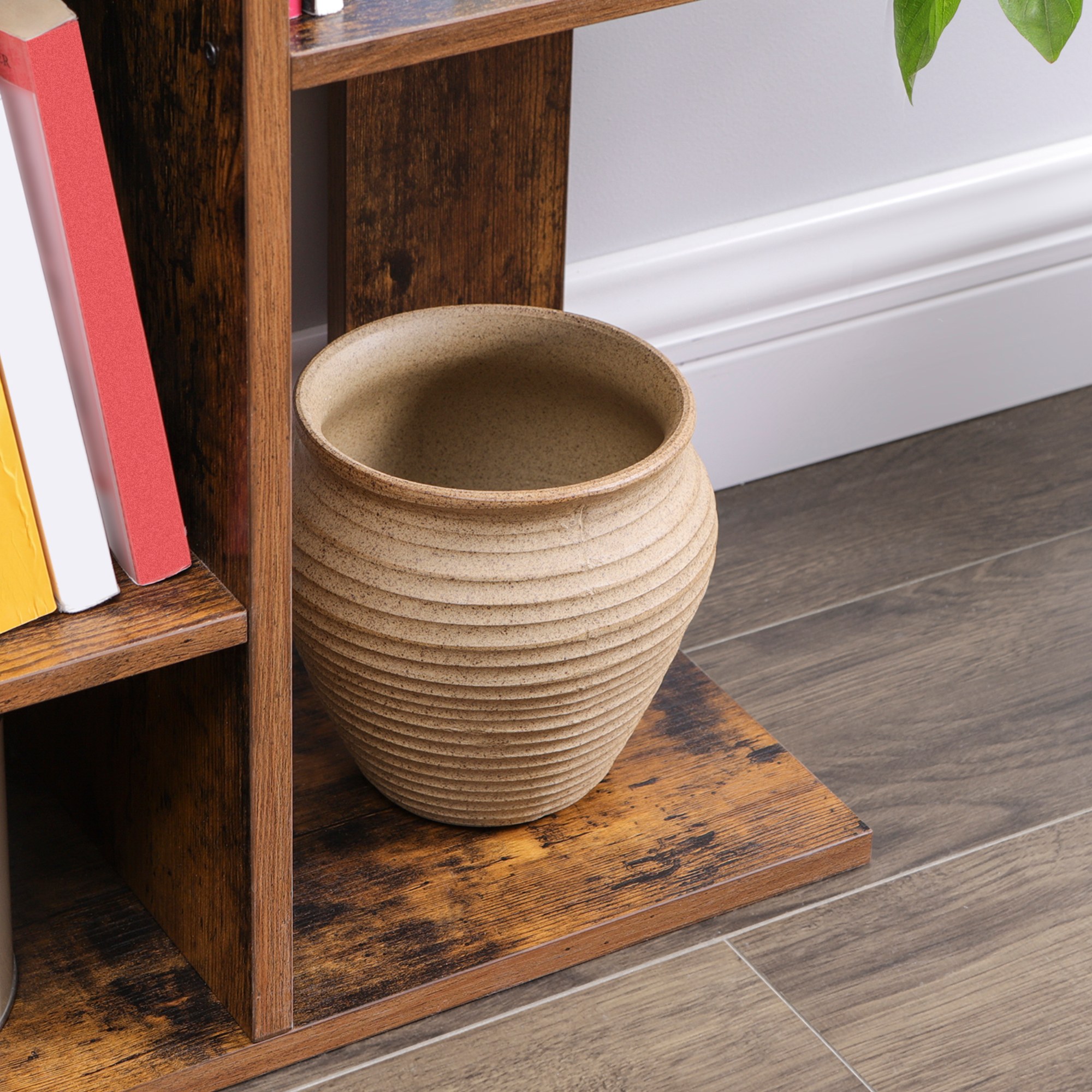 Regál CHRIS sa stane retro ikonou vašej obývačky či spálne. Prírodný drevený dekor v kombinácii so zaoblenými hranami a dizajnovými priehradkami dodá miestnosti pôvab. Celkovo v regáli nájdete 13 praktických priehradok. Môžete tu uložiť širokú škálu rôznych predmetov, skvele sa hodia na knihy, ale umiestnite tu aj vaše dekorácie. Laminovaný drevotrieskový materiál sa vyznačuje jednoduchou údržbou.