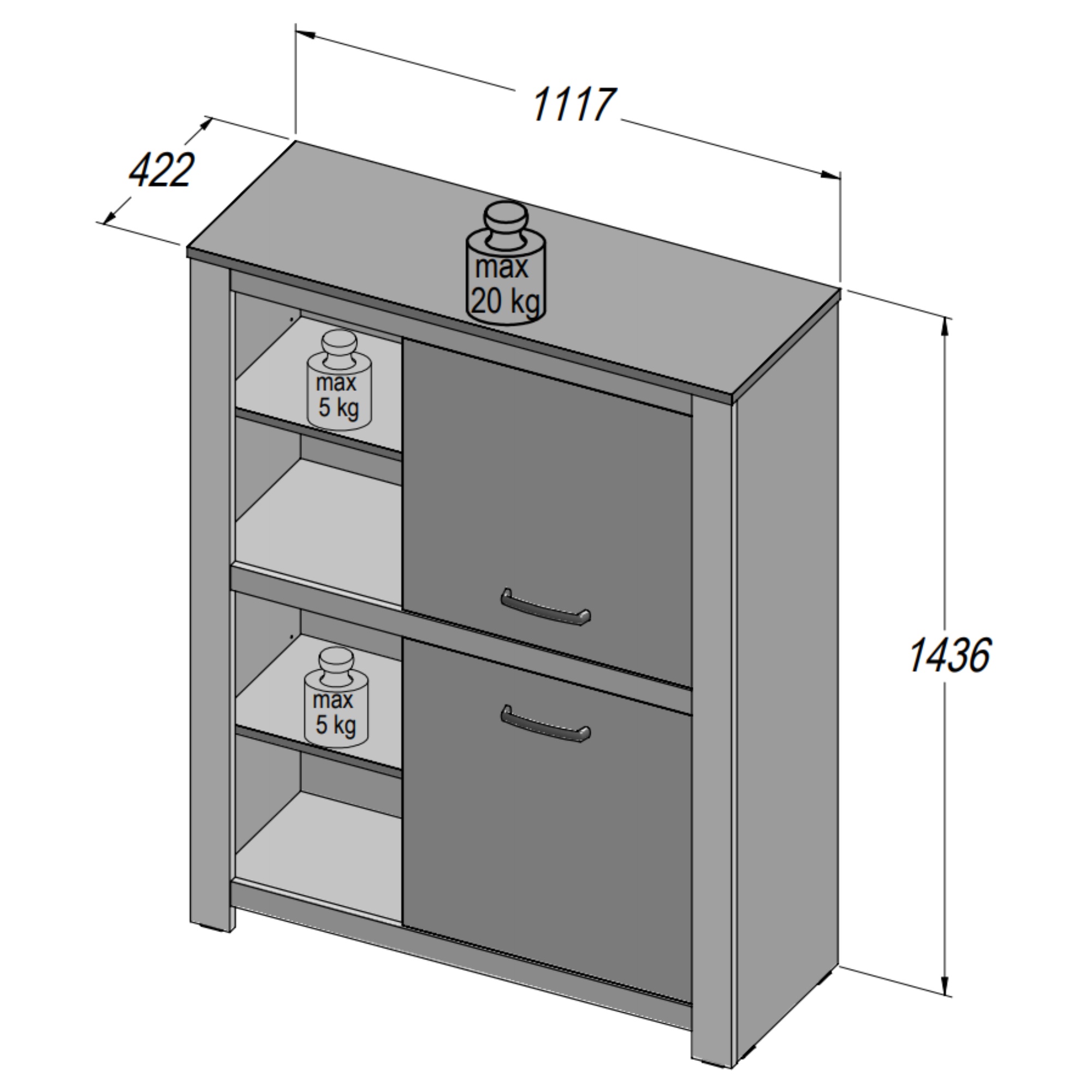 - Rozmer komody: Široká - nad 80 cm, Vysoká - nad 100 cm