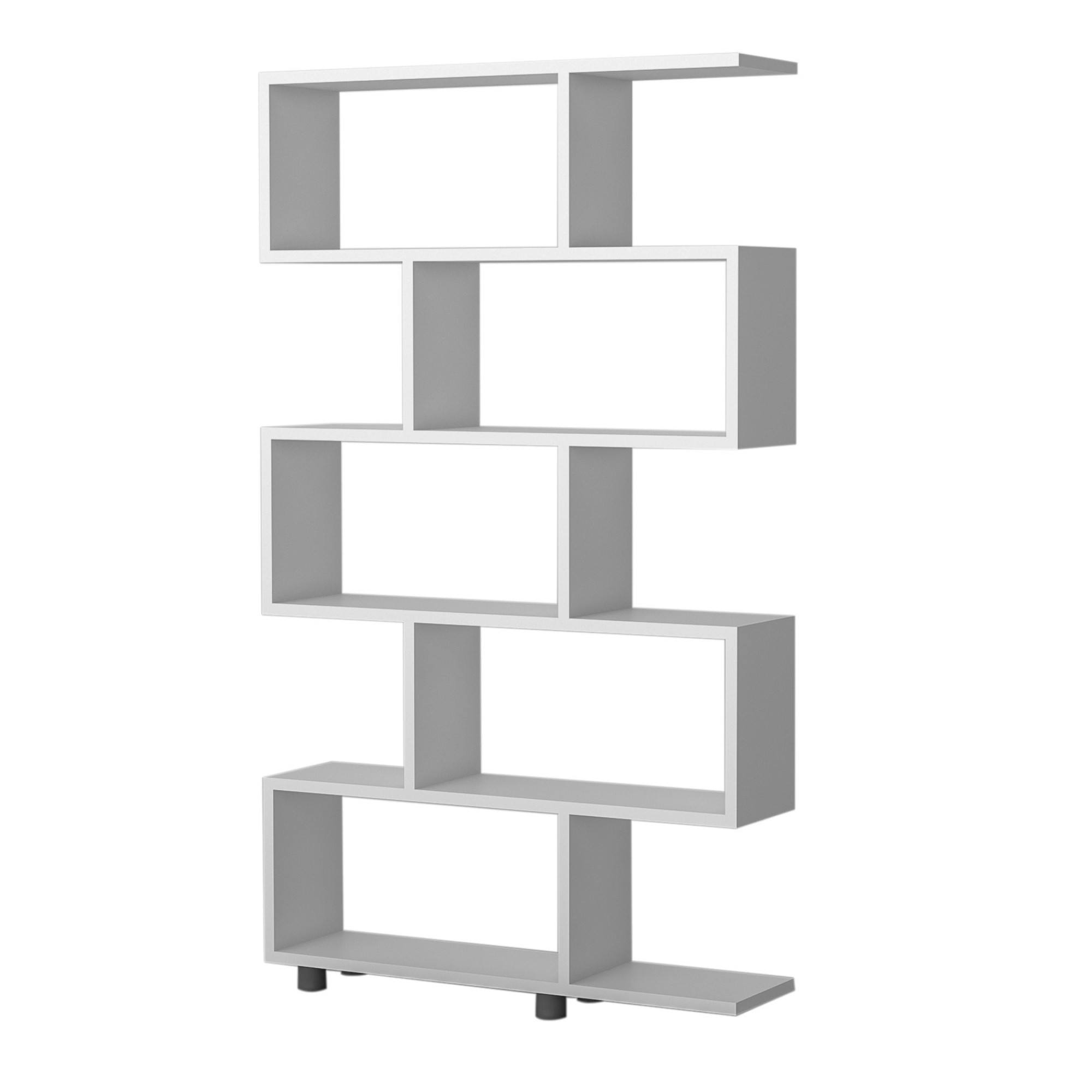 Regál ELIF je moderným a praktickým pomocníkom do každej domácnosti, pracovní alebo kancelárií. Kombinácia atypického vzhľadu a praktických funkcií uspokojí aj tých najnáročnejších. Päť spojených regálov ponúka rozsiahly odkladací priestor. Možno ich využiť ako miesto na vaše knihy, dekorácie či iné drobnosti. Police oživia interiér a prakticky poslúžia na všetko, čo si prajete mať vystavené a po ruke. Regál je možné postaviť do priestoru aj ku stene. Laminovaný drevený materiál je ľahký na údržbu.