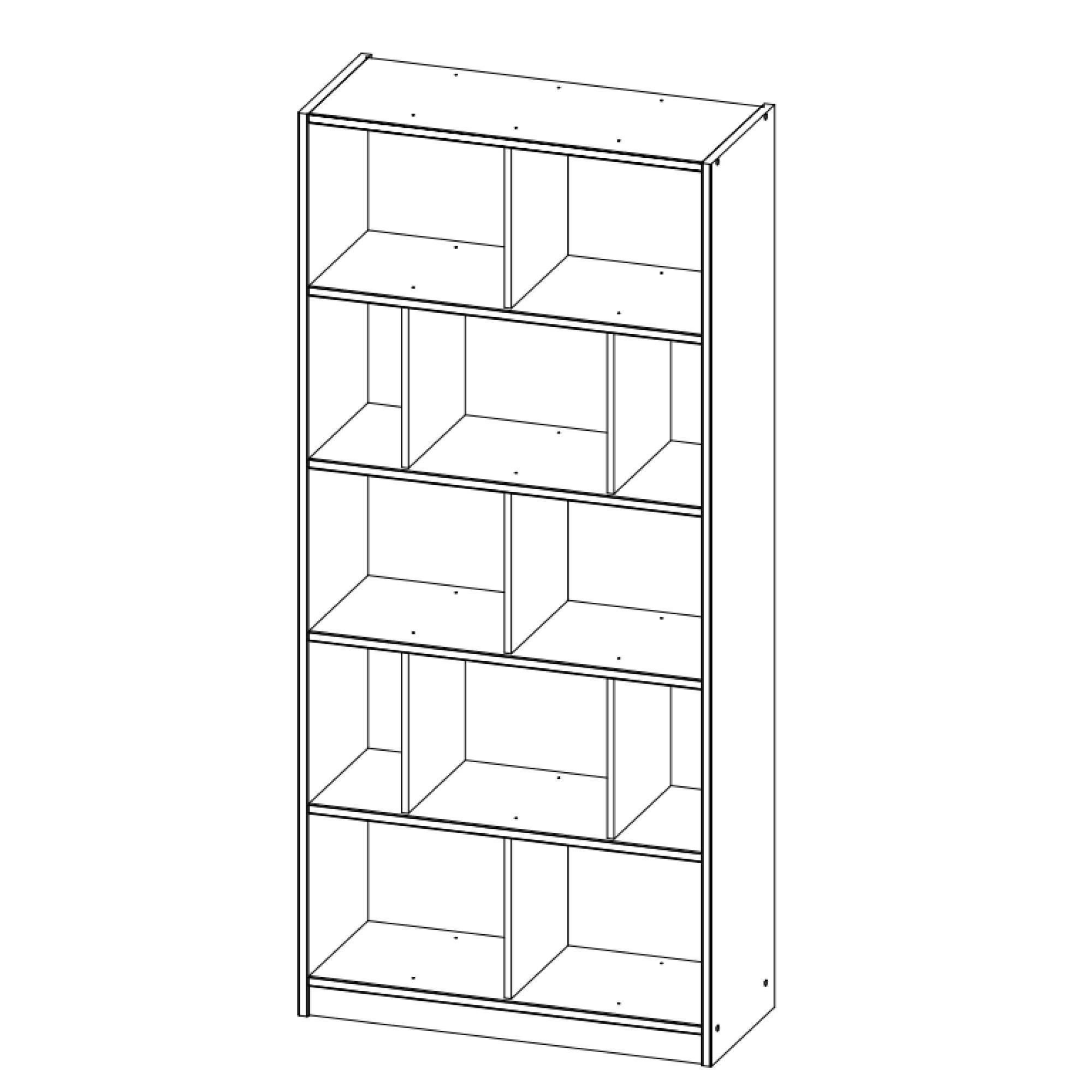 Konštrukcia je tvorená štyrmi policami, ktoré sú rozdelené do 12 priehradiek. Regál tak ponúka dostatočný odkladací priestor na zakladače, knižky alebo učebnice. Umiestniť tu môžete aj vázy a sviečky či iné dekoratívne predmety.