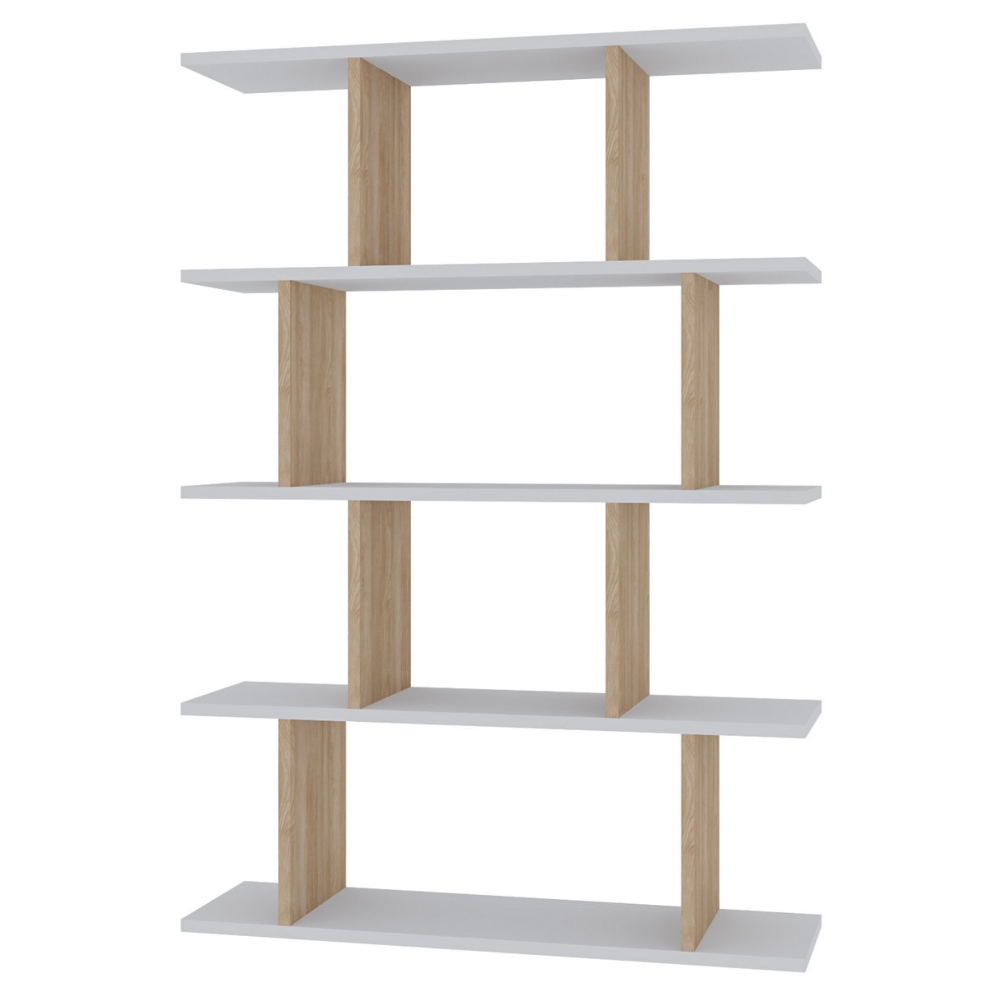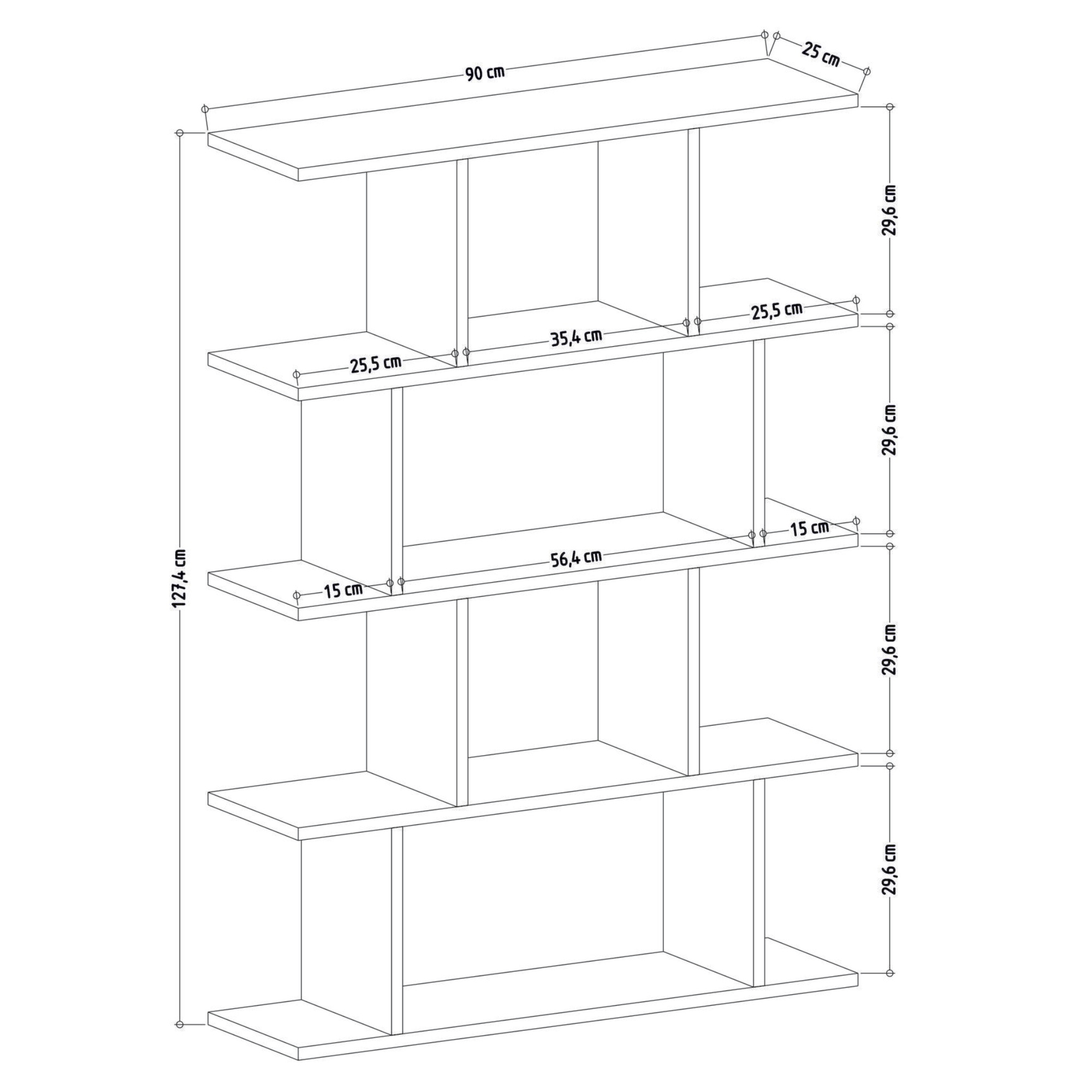 Či už ho umiestnite do obývacej izby, spálne či pracovne, tak spoľahlivo doplní miestnosť o jednoduchý úložný priestor. Zostavený je z vertikálne a horizontálne umiestnených dosiek, ktoré vytvárajú rôzne veľké odkladacie okná práve na prehľadné skladovanie alebo vystavenie dekoratívnych predmetov. Vďaka svojmu vzhľadu najviac vynikne postavený pri stene. Konštrukcia je vyrobená z laminovanej drevotriesky s nenáročnou povrchovou údržbou.