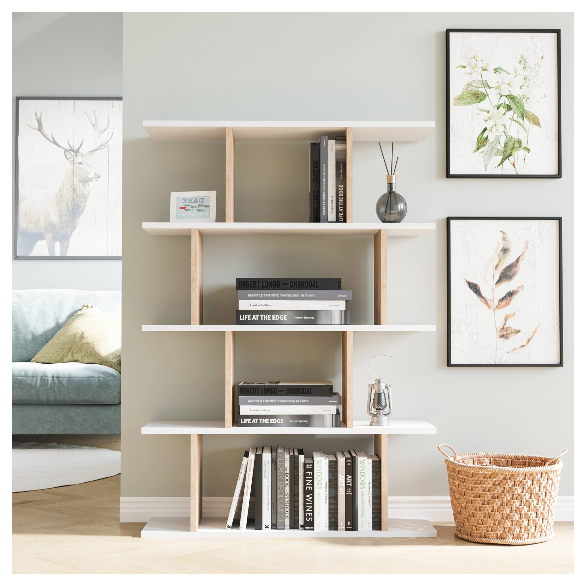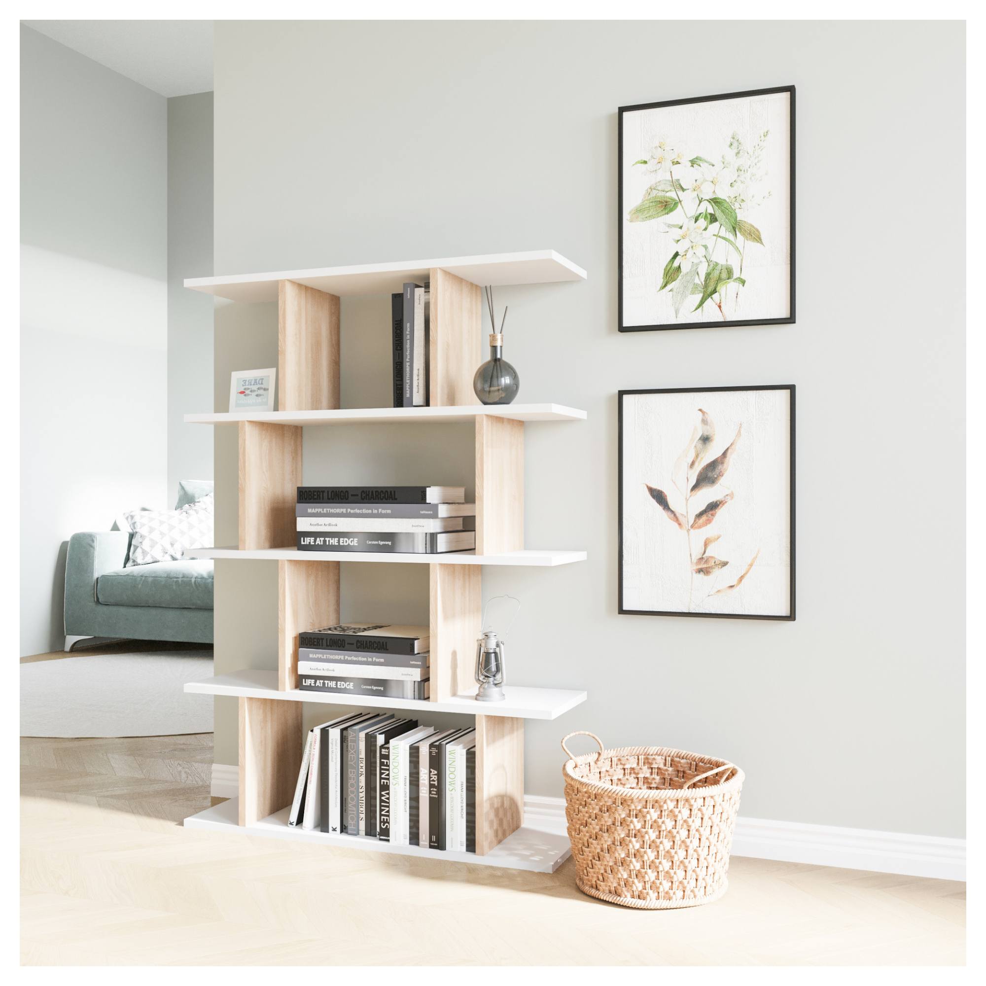 Regál HARMON v nadčasovom spracovaní so škandinávskym nádychom skvele doplní takmer akýkoľvek štýl interiéru.