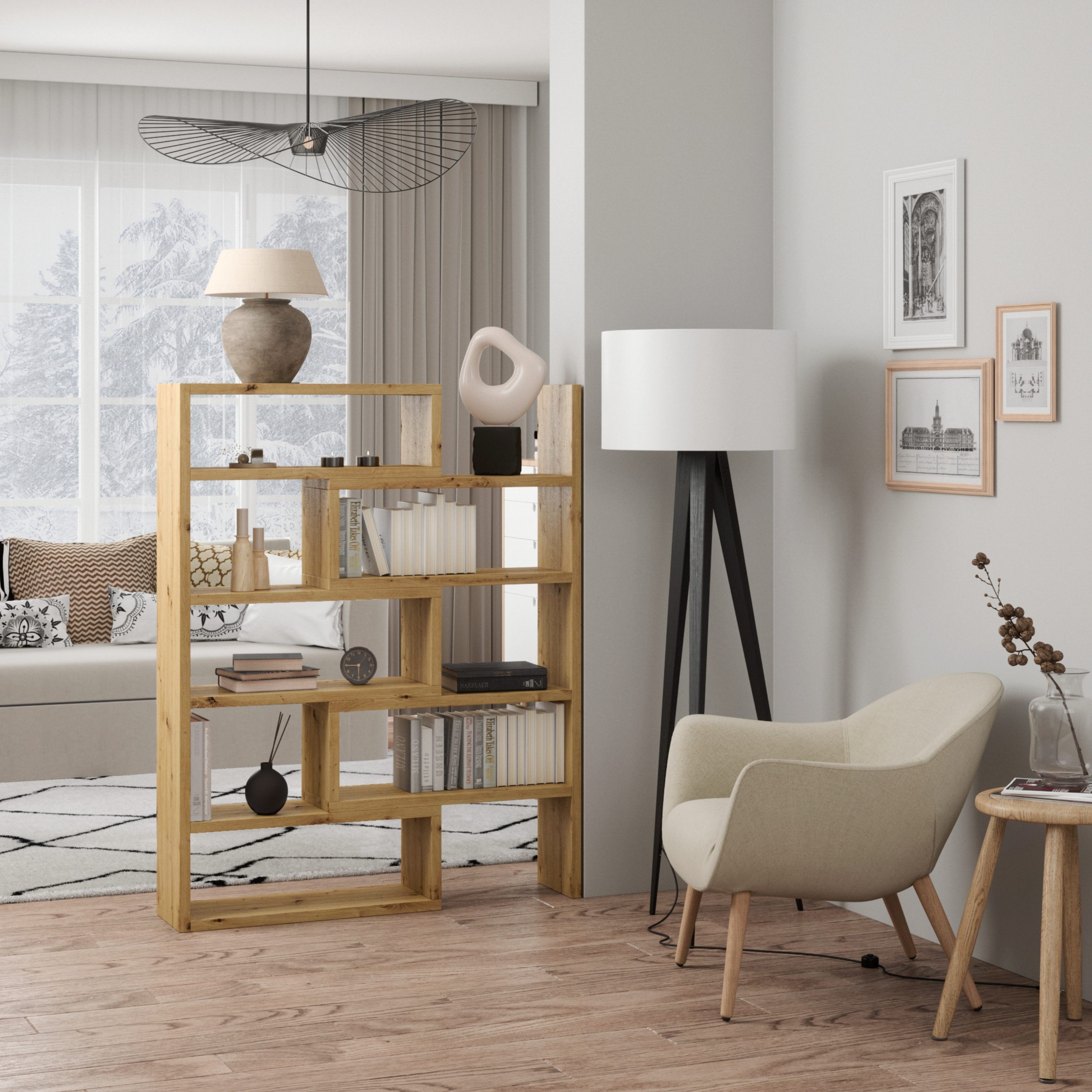 Regál disponuje 4 policami, ktoré vytvárajú 9 oddelených úložných priestorov. Ponúka dostatok priestoru na knihy a dekorácie. Vďaka svojmu otvorenému prevedeniu ho možno využiť ako štýlové rozdelenie priestoru a zabezpečiť tak viac súkromia, bez toho aby interiér pôsobil ťažko či uzavreto.