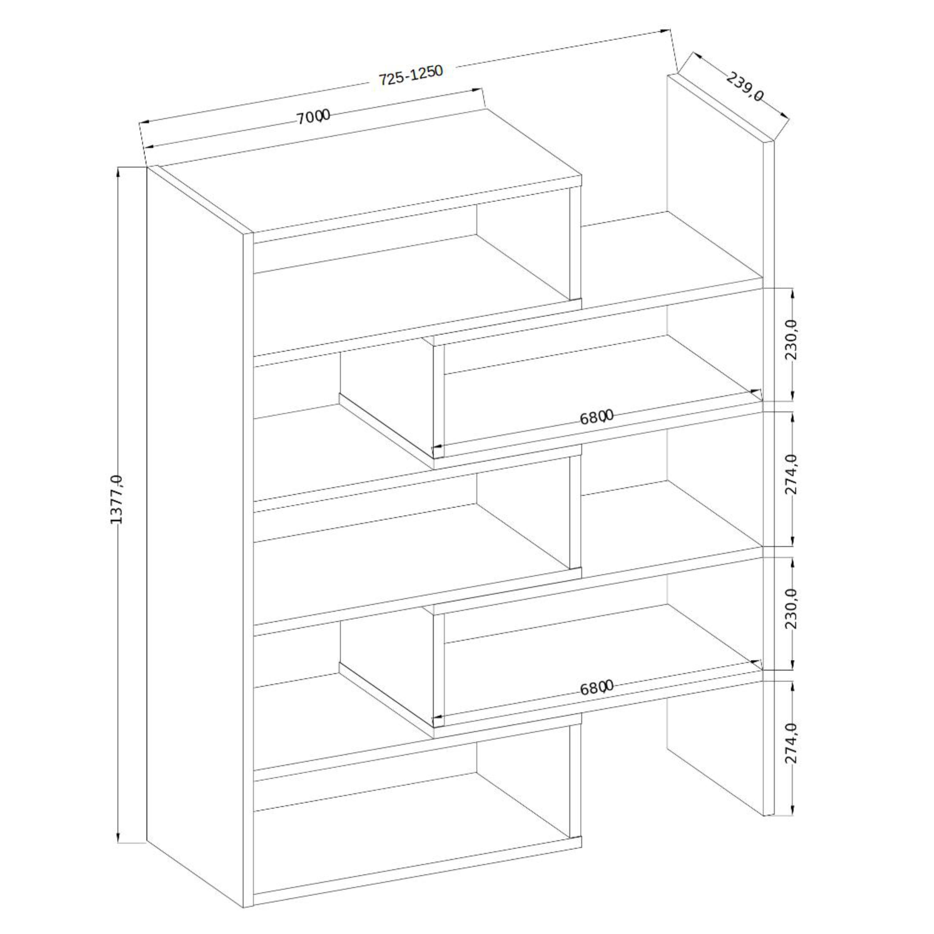Regál disponuje 4 policami, ktoré vytvárajú 9 oddelených úložných priestorov. Ponúka dostatok priestoru na knihy a dekorácie. Vďaka svojmu otvorenému prevedeniu ho možno využiť ako štýlové rozdelenie priestoru a zabezpečiť tak viac súkromia, bez toho aby interiér pôsobil ťažko či uzavreto.