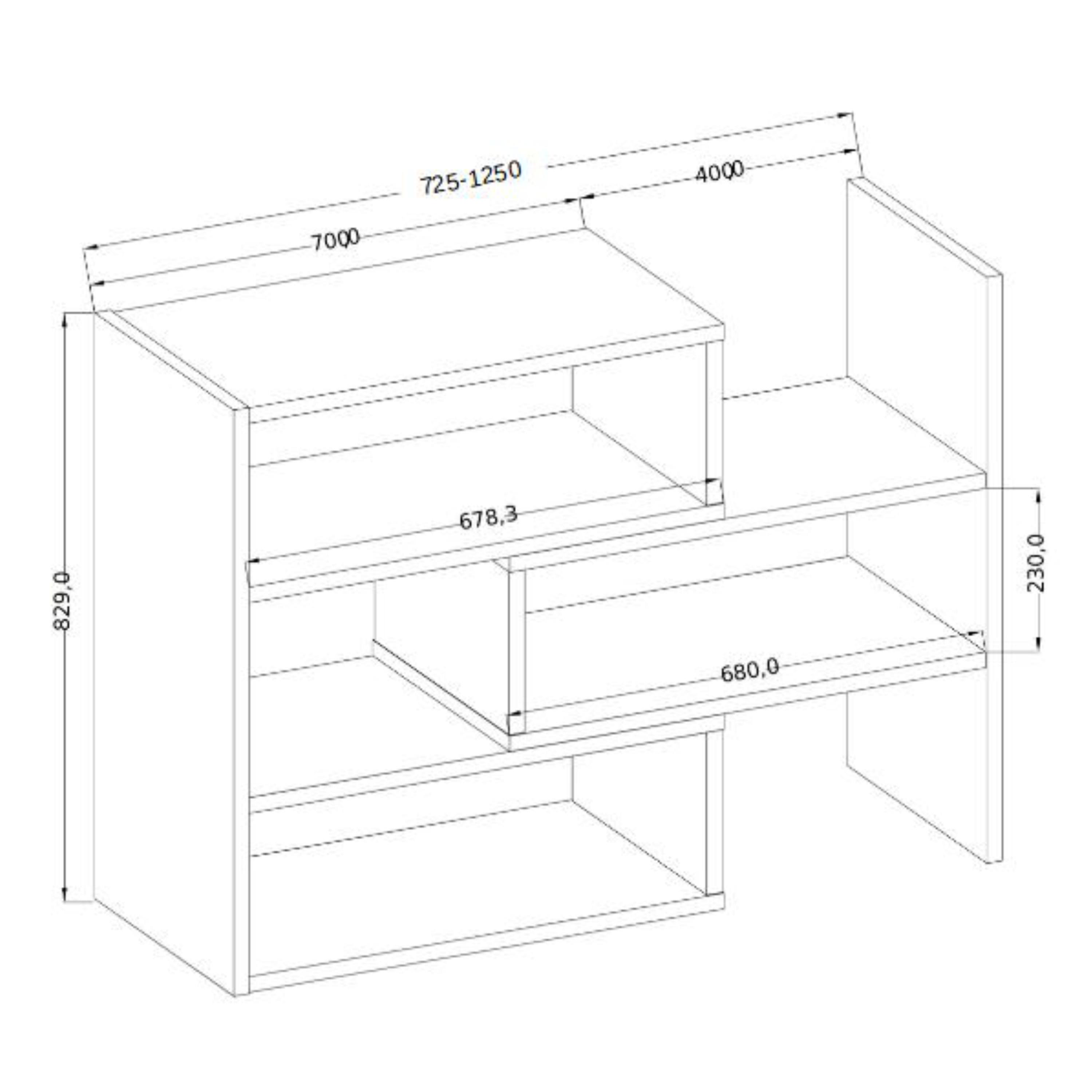 Regál disponuje 2 policami, ktoré vytvárajú 5 oddelených úložných priestorov. Ponúka dostatok miesta na knihy a dekorácie. Vďaka svojmu otvorenému prevedeniu ho možno využiť ako štýlové rozdelenie priestoru a opticky oddeliť jednotlivé zóny, bez toho aby interiér pôsobil ťažko či uzavreto.