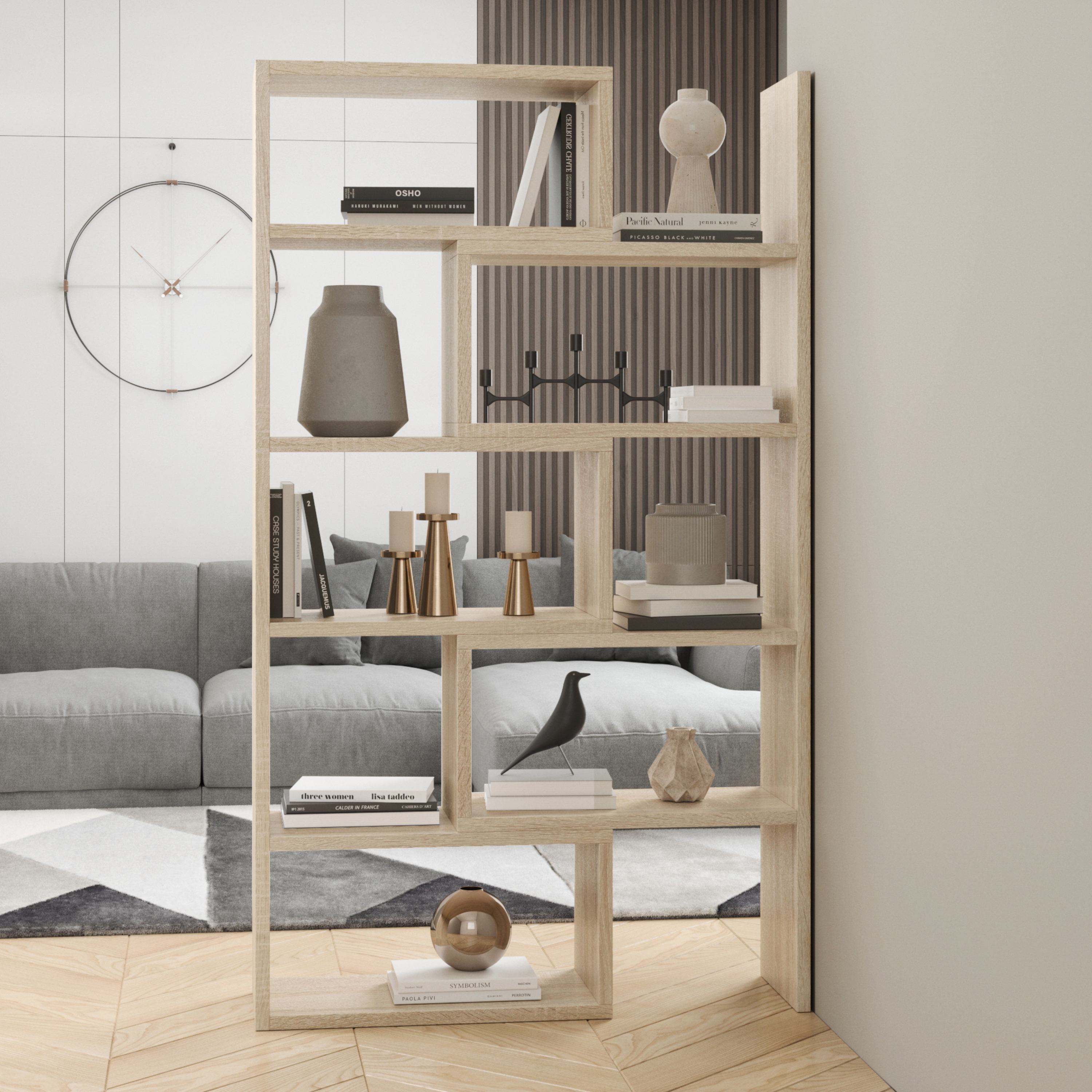 Regál disponuje 4 policami, ktoré vytvárajú 9 oddelených úložných priestorov. Ponúka dostatok priestoru na knihy a dekorácie. Vďaka svojmu otvorenému prevedeniu ho možno využiť ako štýlové rozdelenie priestoru a zabezpečiť tak viac súkromia, bez toho aby interiér pôsobil ťažko či uzavreto.
