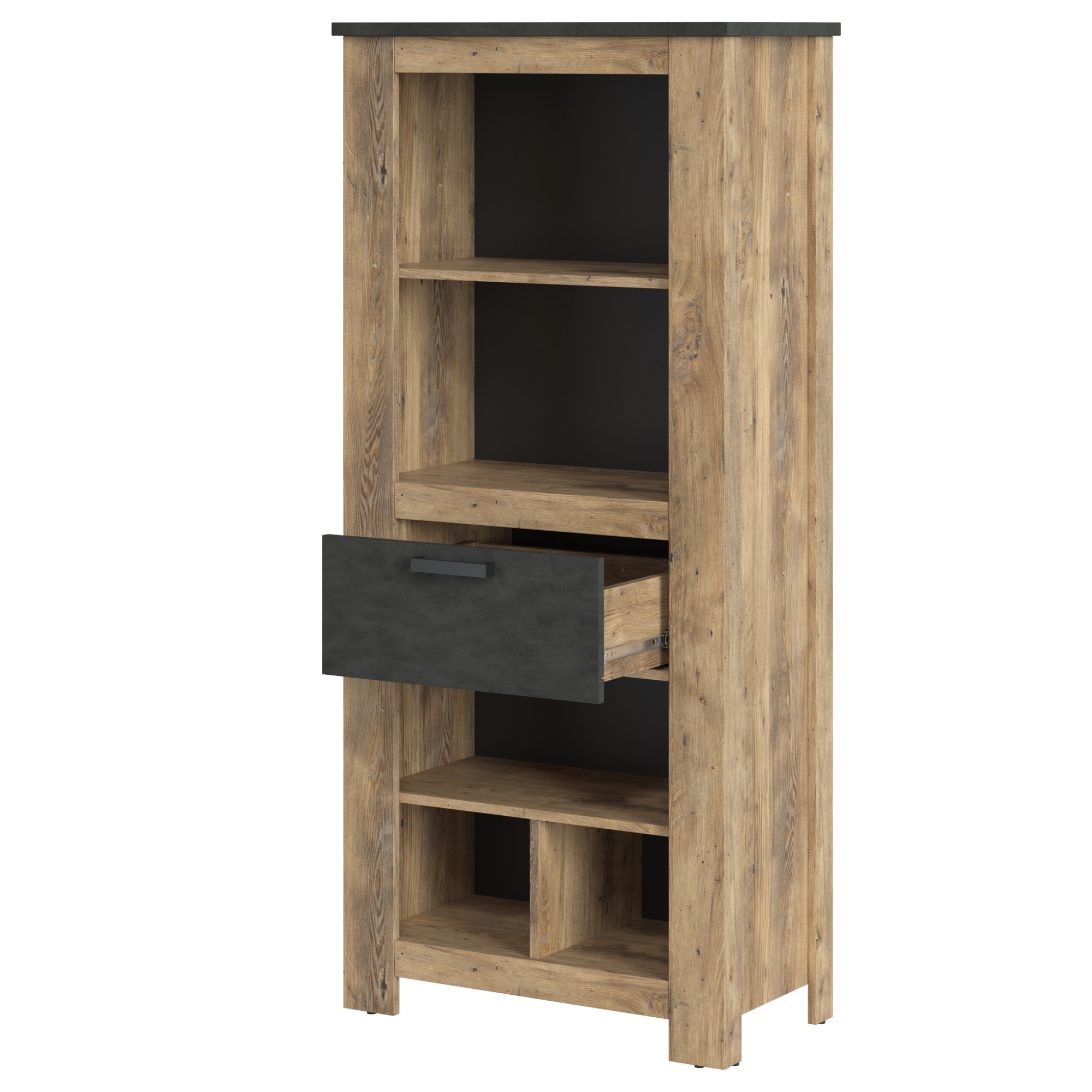 Máte doma hromadu kníh a premýšľate o tom, dopriať im dôstojné miesto? Regál RAPALLO sa o ne rád postará. Vďaka orámovaniu pripomína klasický drevený nábytok, pôsobí masívnym dojmom a očarí vás svojím surovým vzhľadom. Otvorený odkladací priestor regála môžete využiť nielen na knihy, ale aj na dekorácie, fotografie alebo kvety a vytvoriť si tak priestor, ktorý bude odrážať vašu osobnosť a zároveň váš domov dokonale zútulní. Príručná zásuvka môže poslúžiť napríklad na uschovanie doskových hier. S regálom RAPALLO vnesiete do miestnosti poriadok s nádychom prírody.
