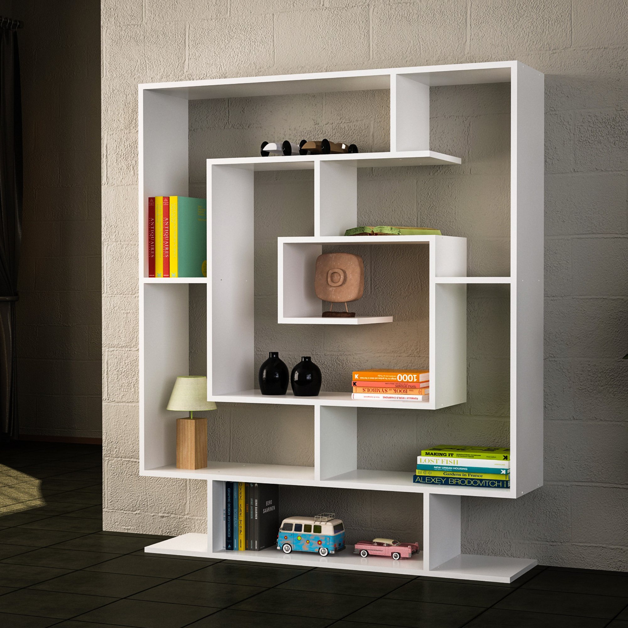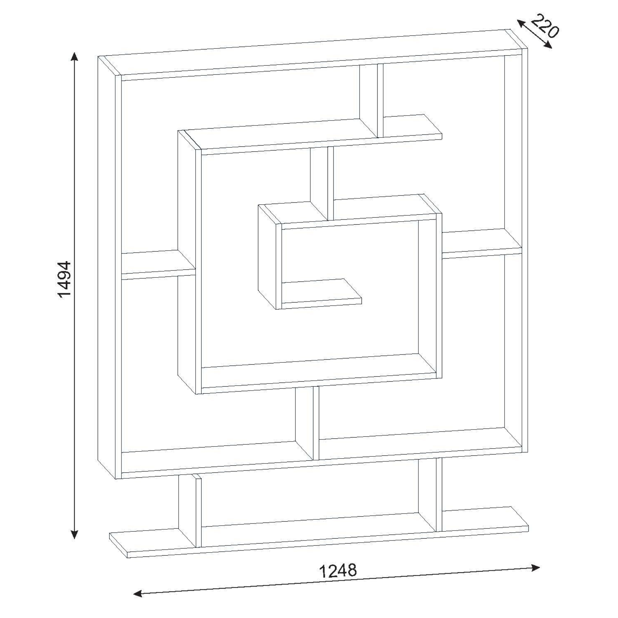 Ak hľadáte originálne miesto na svoje knihy, je regál SARMASIK pre vás trefou do čierneho. S jedinečným geometrickým dizajnom ponúka tento regál zaujímavý a atraktívny vzhľad, ktorý sa stane dominantou každého interiéru. Regál je ideálny na vystavenie kníh, dekorácií a ďalších predmetov vďaka rôzne veľkým a asymetricky rozmiestneným policiam. Tento bytový doplnok je praktickým a estetickým riešením pre vašu obývaciu izbu, pracovňu alebo spálňu.