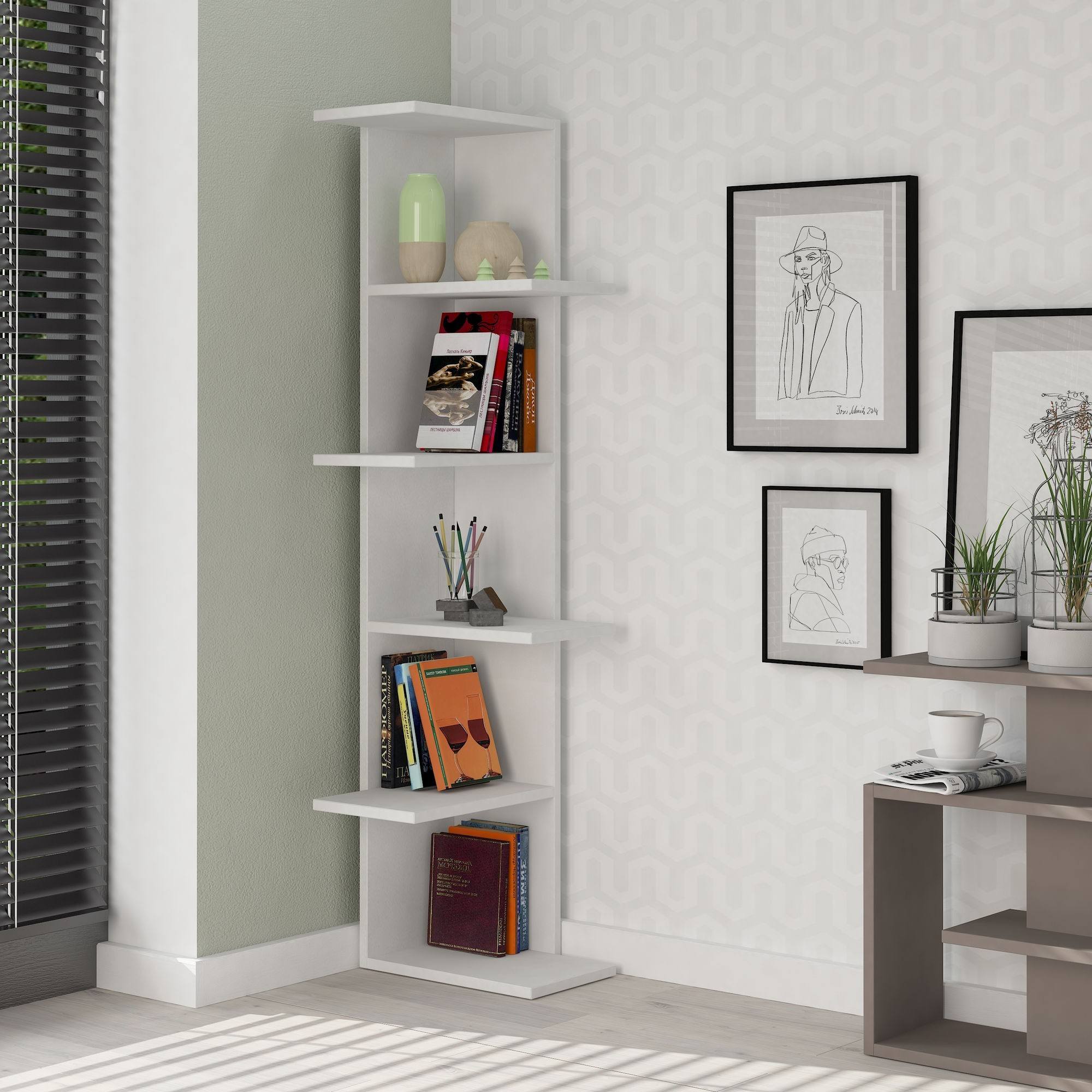 S regálom SASO doprajete svojim knihám originálne odkladacie miesto. Najlepšie vynikne v rohu miestnosti, ktorý dokáže nielen funkčne využiť, ale aj oživiť. Neštandardné rozloženie políc vytvára jedinečný vzhľad. Či už regál SASO zaplníte knihami, alebo len vyzdobíte rodinnými fotografiami, sviečkami alebo suvenírmi z ciest, vytvoríte s jeho pomocou útulný domov.