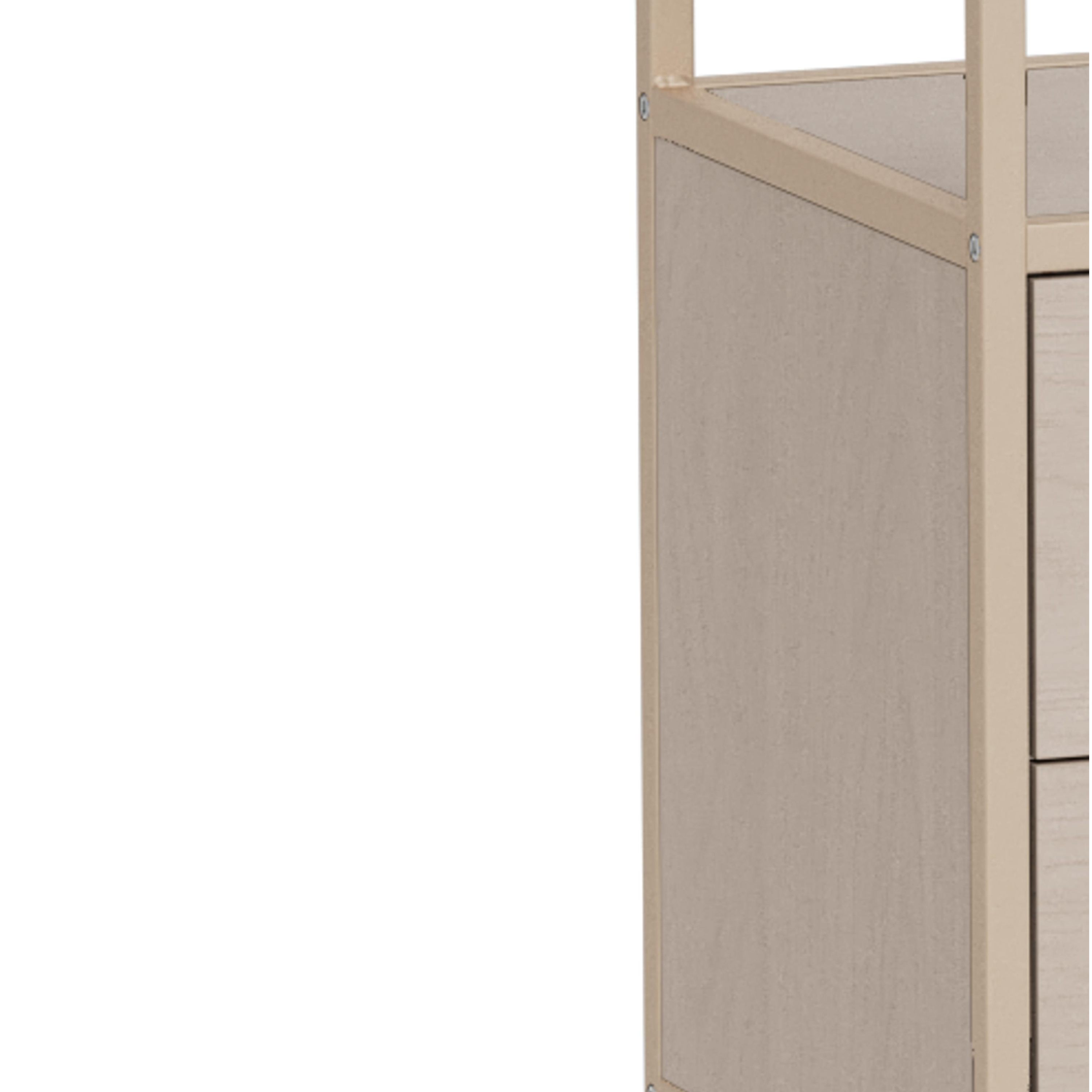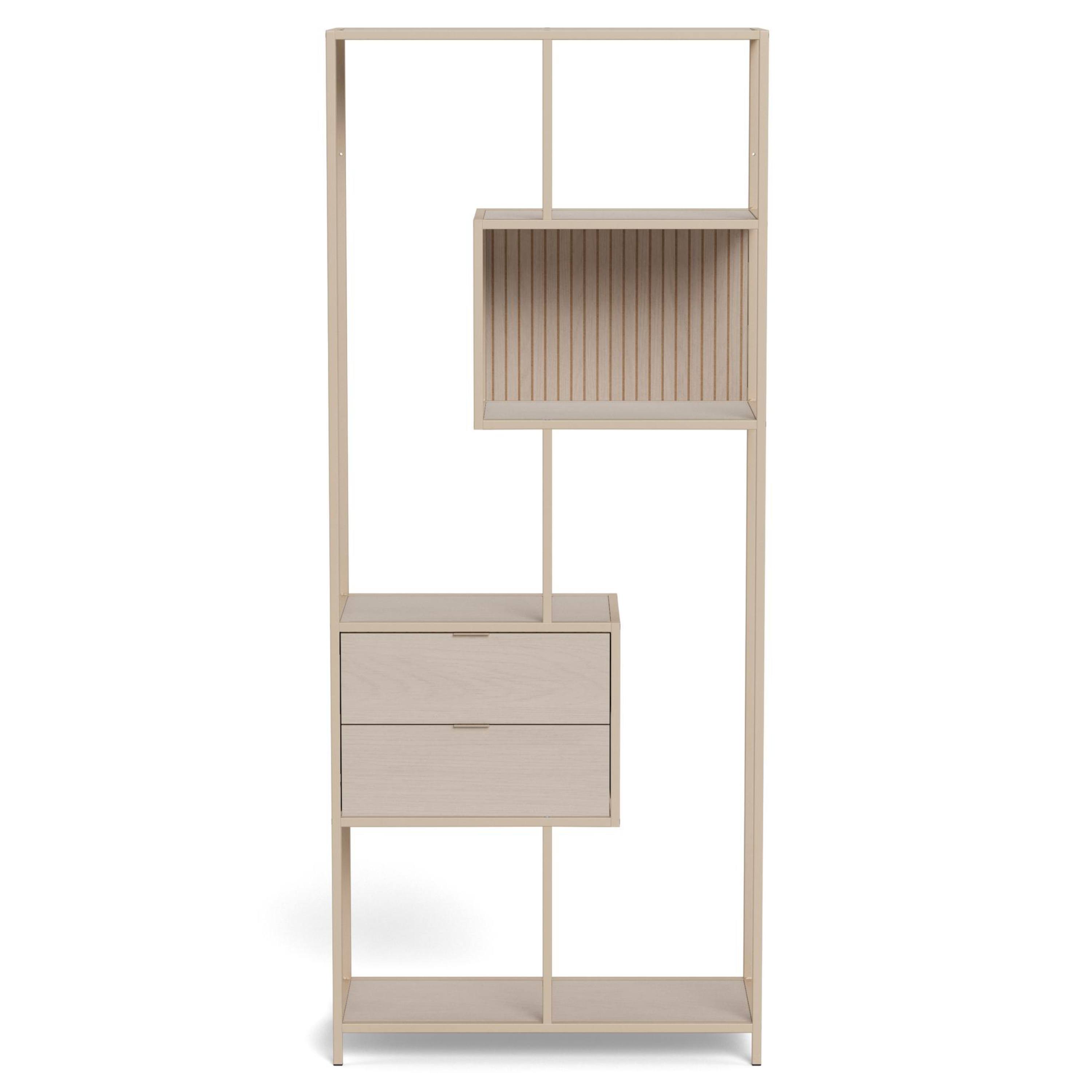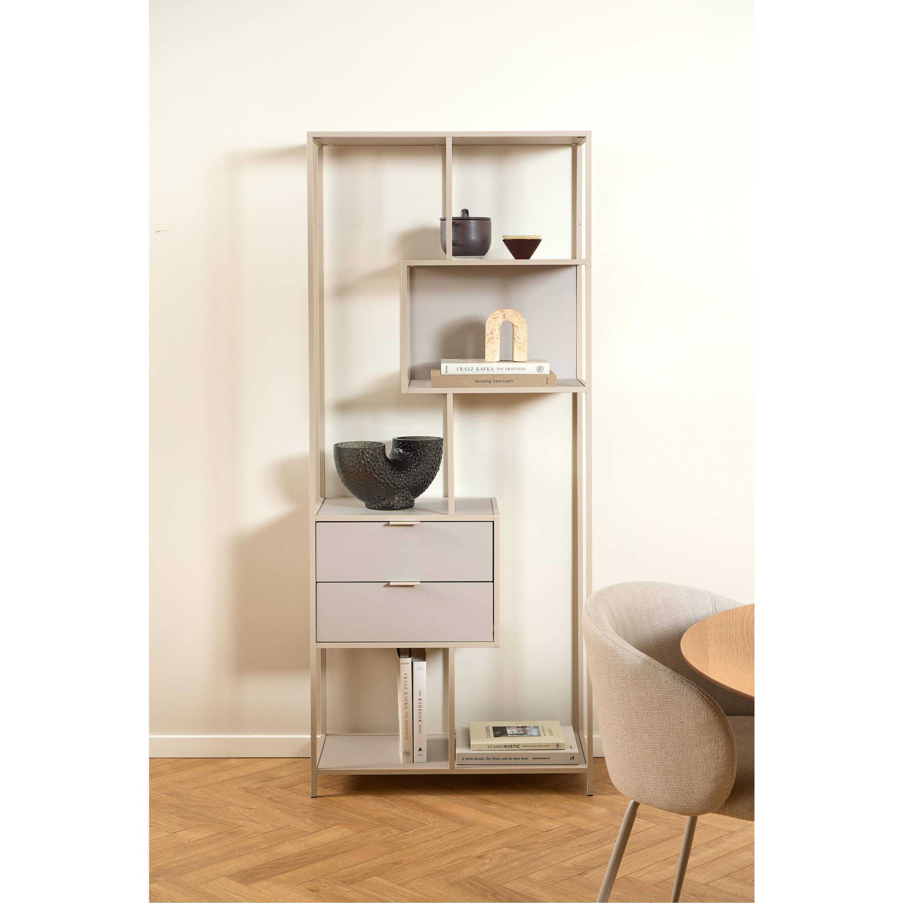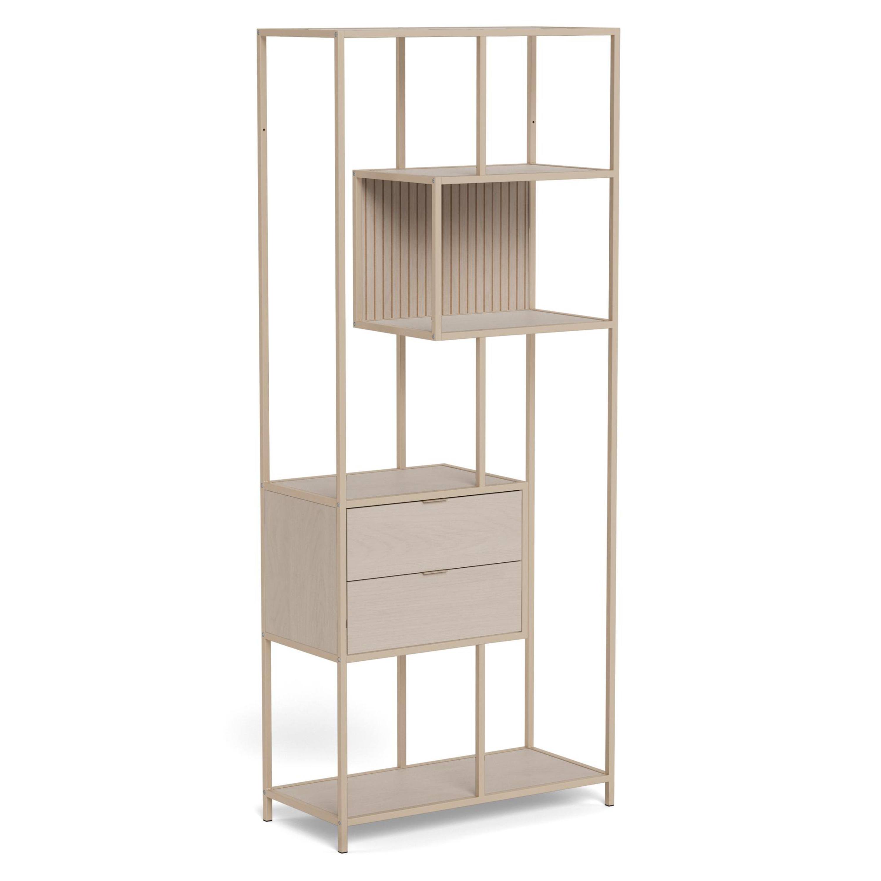 Jednoduchá konštrukcia s 2 zásuvkami a otvorenými, odkladacími plochami ponúka dostatok miesta na uloženie kníh, dokumentov a vystavenie dekoratívnych predmetov. Konštrukcia knižnice je vyrobená z pevnej ocele s práškovým nástrekom, zatiaľ čo zásuvky a odkladacie plochy sú vyhotovené z laminovaných MDF dosiek s povrchom nenáročným na údržbu.