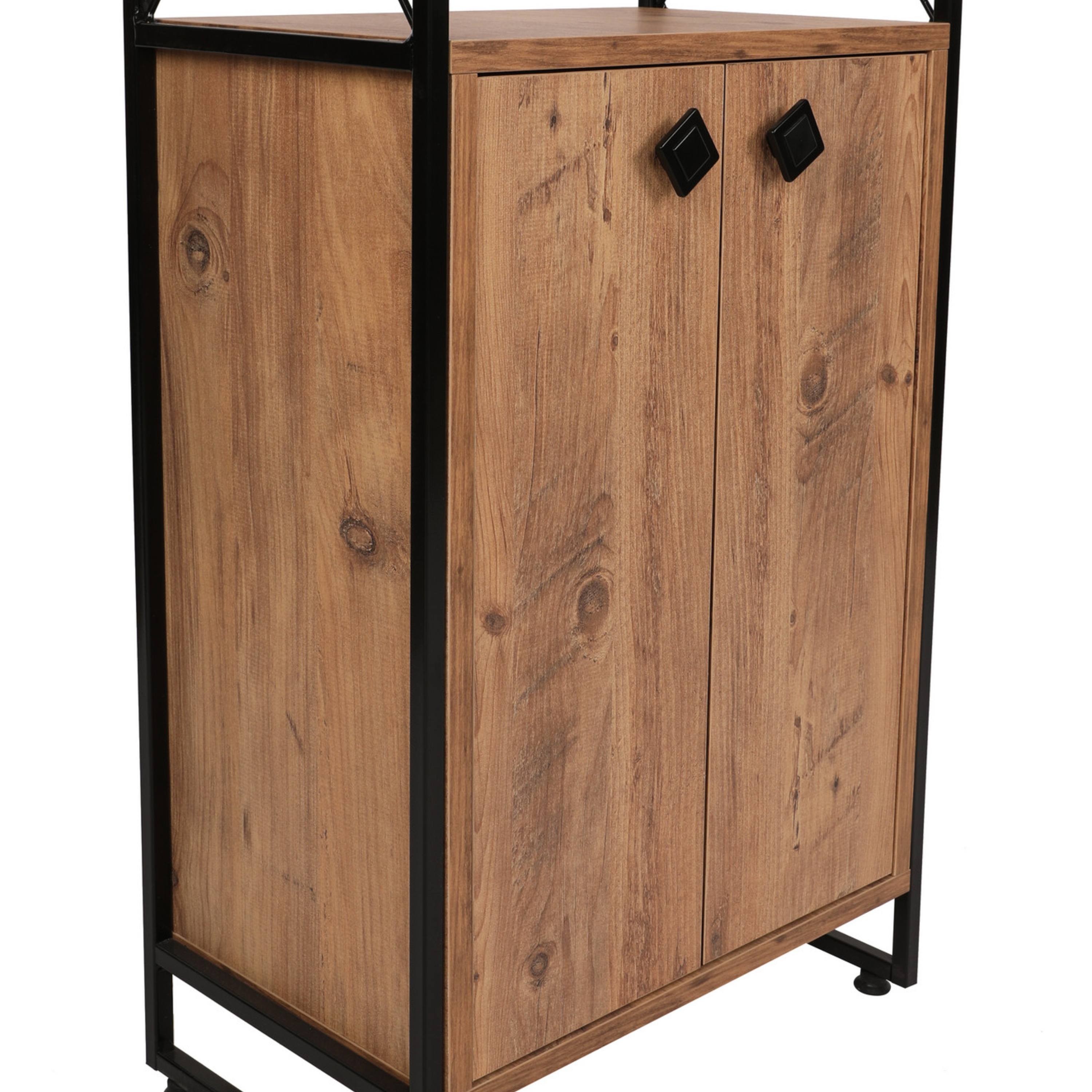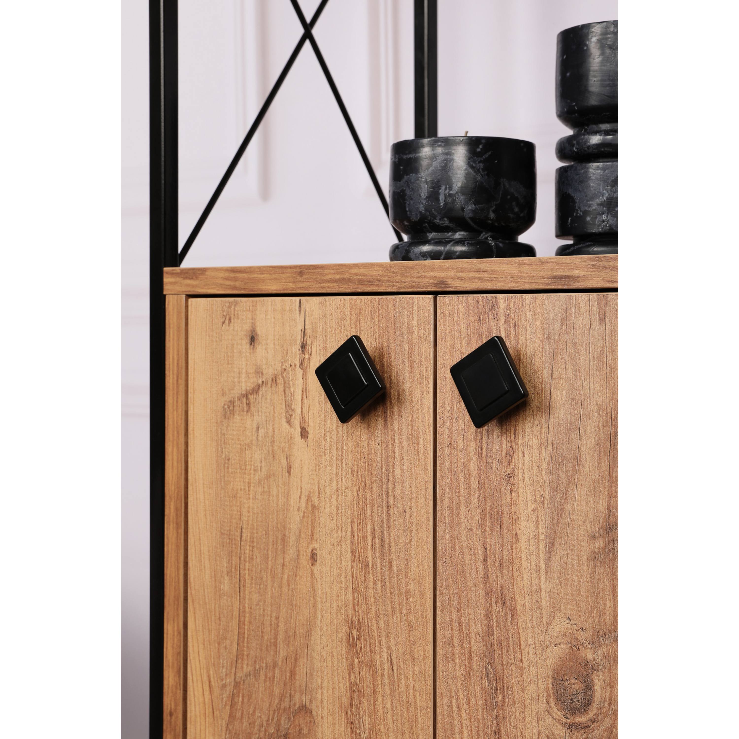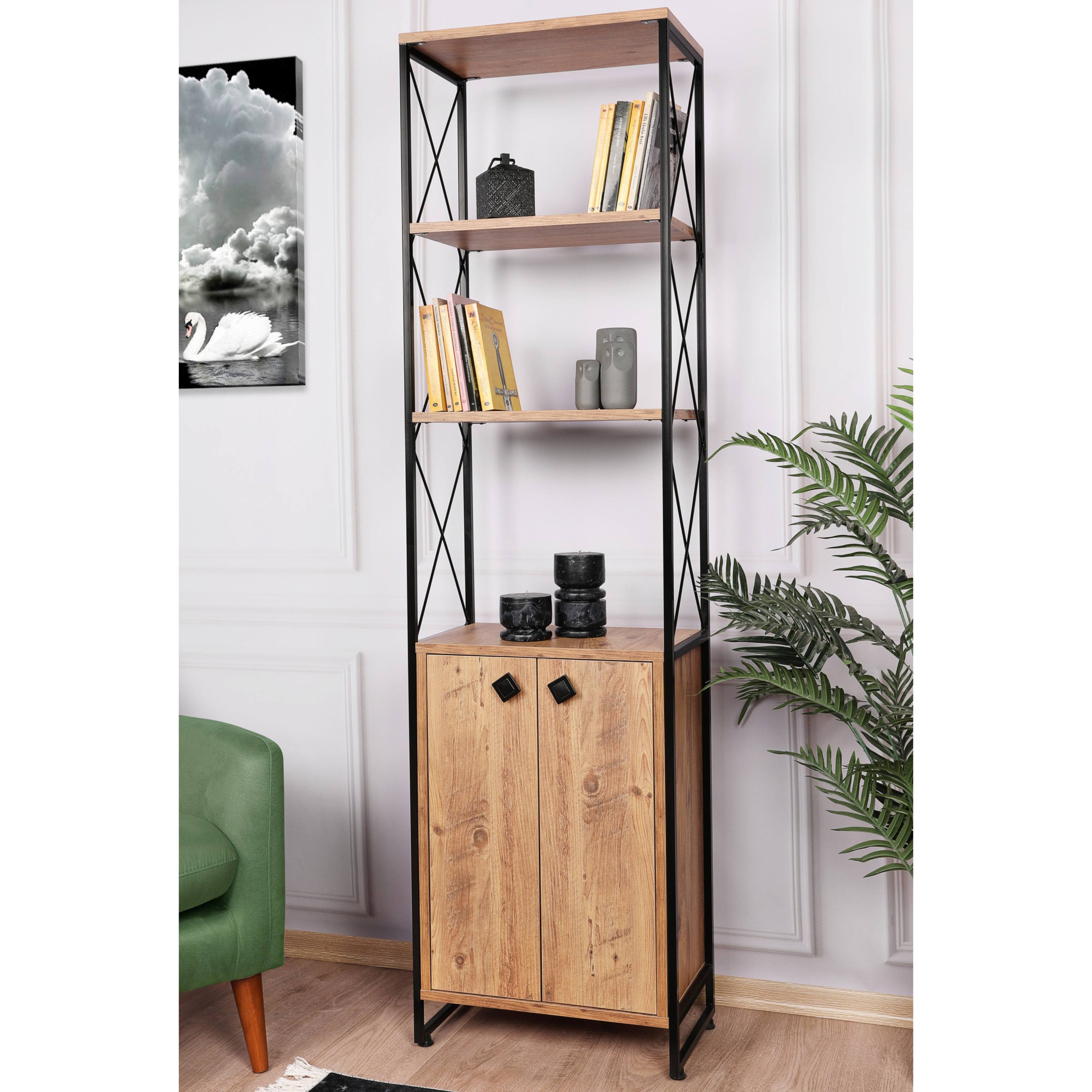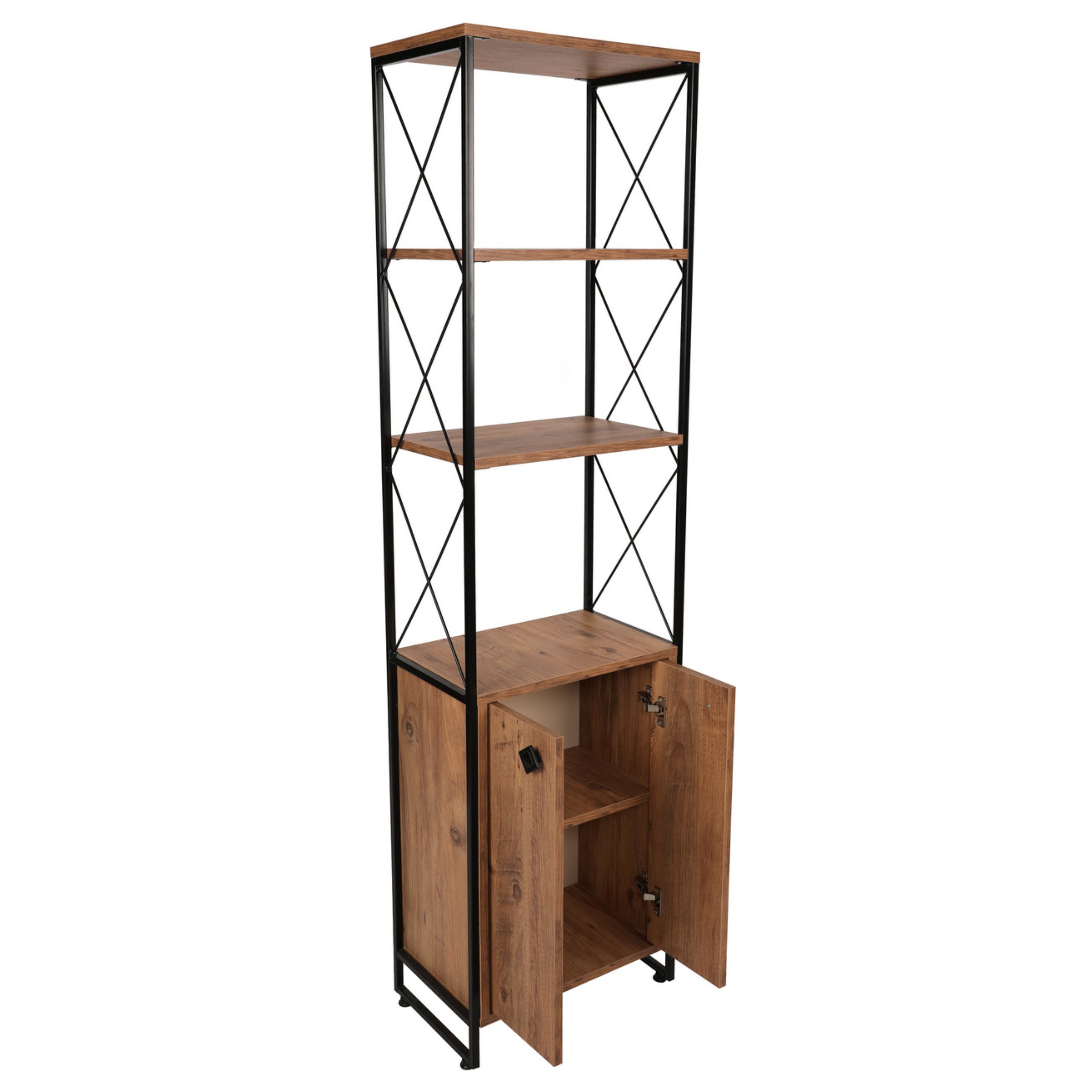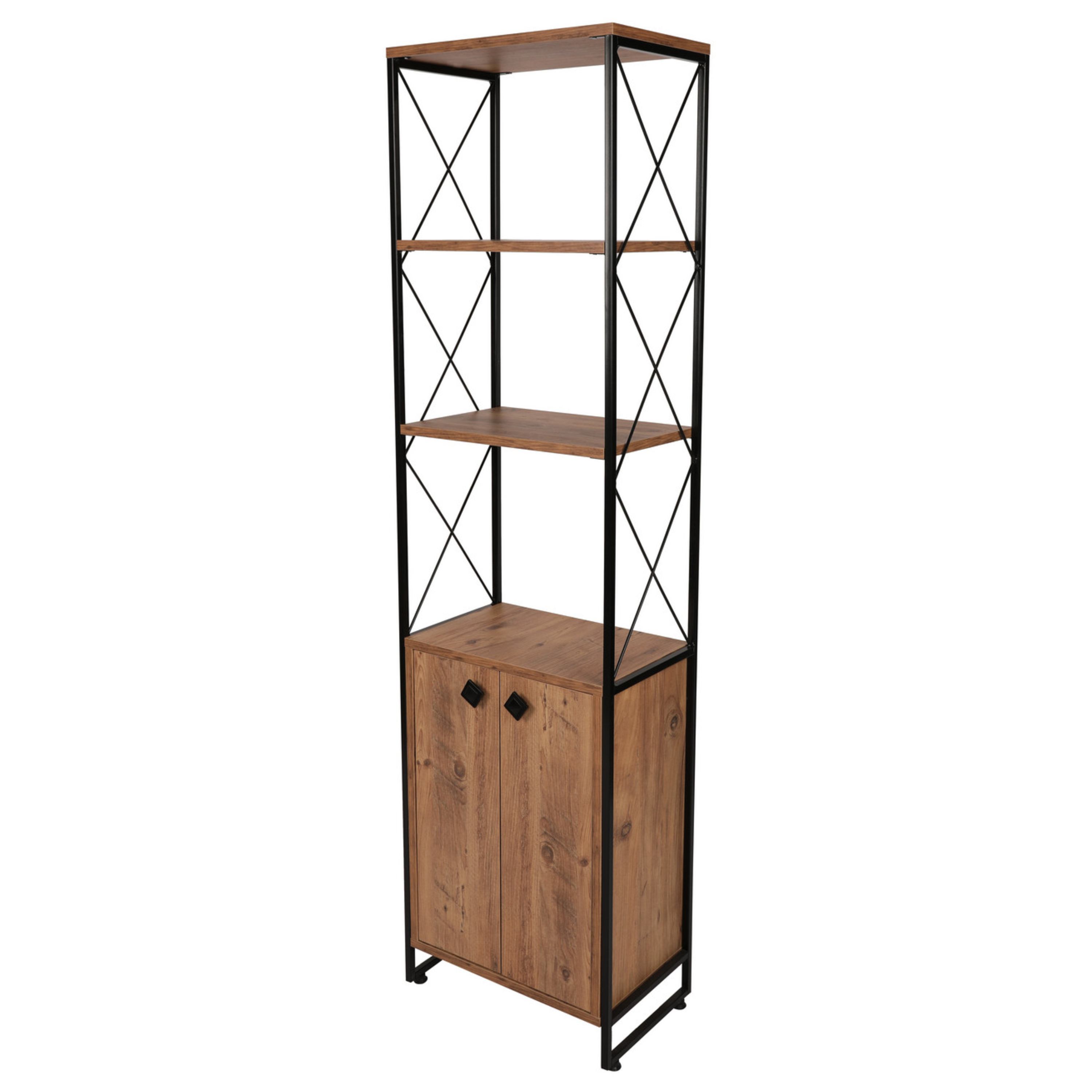 Je vyrobený z kvalitnej laminovanej drevotriesky, ktorá sa ľahko udržiava. Kovová konštrukcia dodáva regálu pevnosť a stabilitu, zatiaľ čo čierne detaily prinášajú industriálny vzhľad, ktorý vynikne v každom priestore.