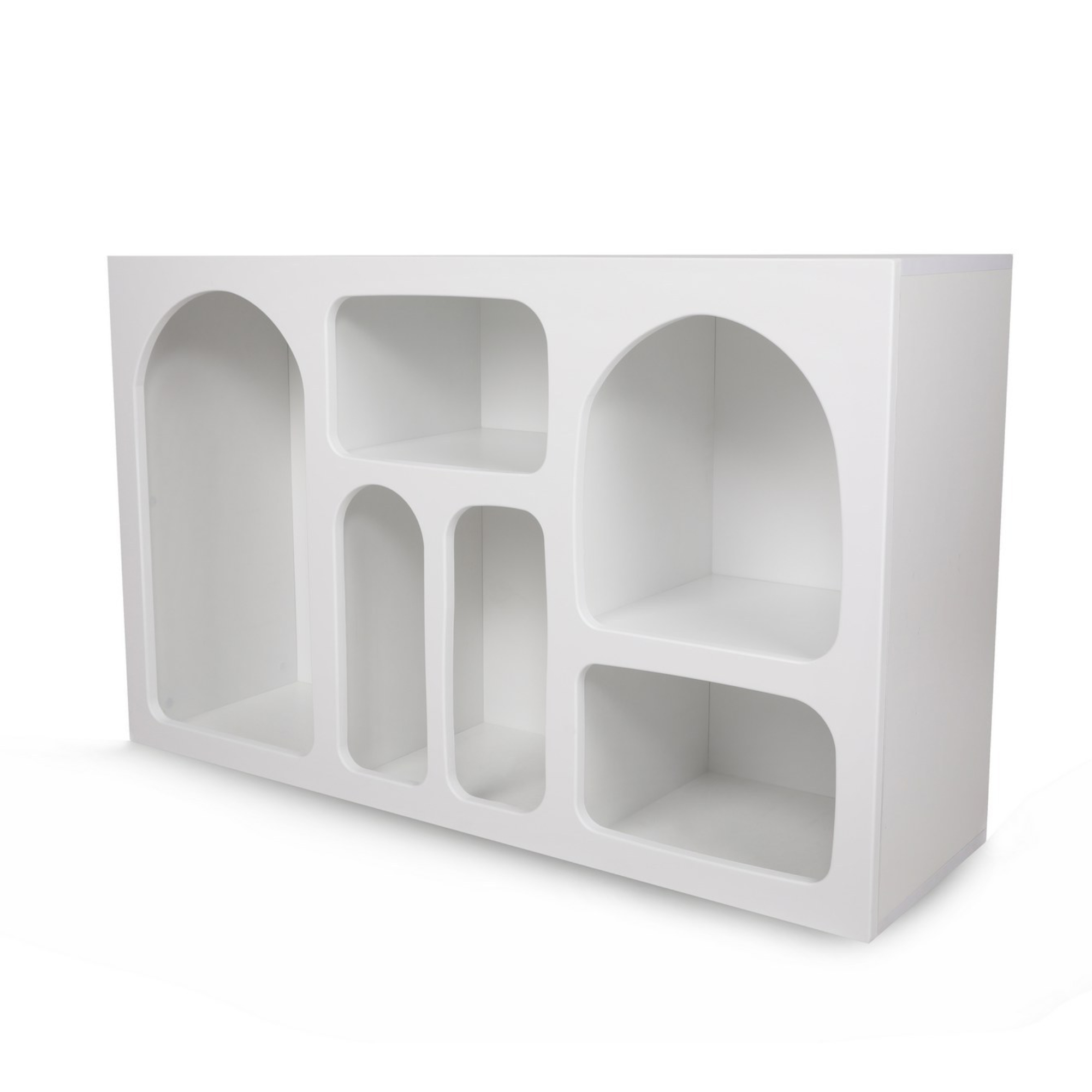 Regál LIVA v sebe spája funkčnosť s atypickým vzhľadom. Pokiaľ sa rozhodnete umiestniť ho do vašej obývacej izby, získate originálny bytový doplnok, ktorý sa stane dominantou priestoru. V jeho výklenkoch skvele vyniknú nielen dekorácie, suveníry z dovoleniek či fotografie, ale môžete do nich umiestniť aj knihy alebo kvety.