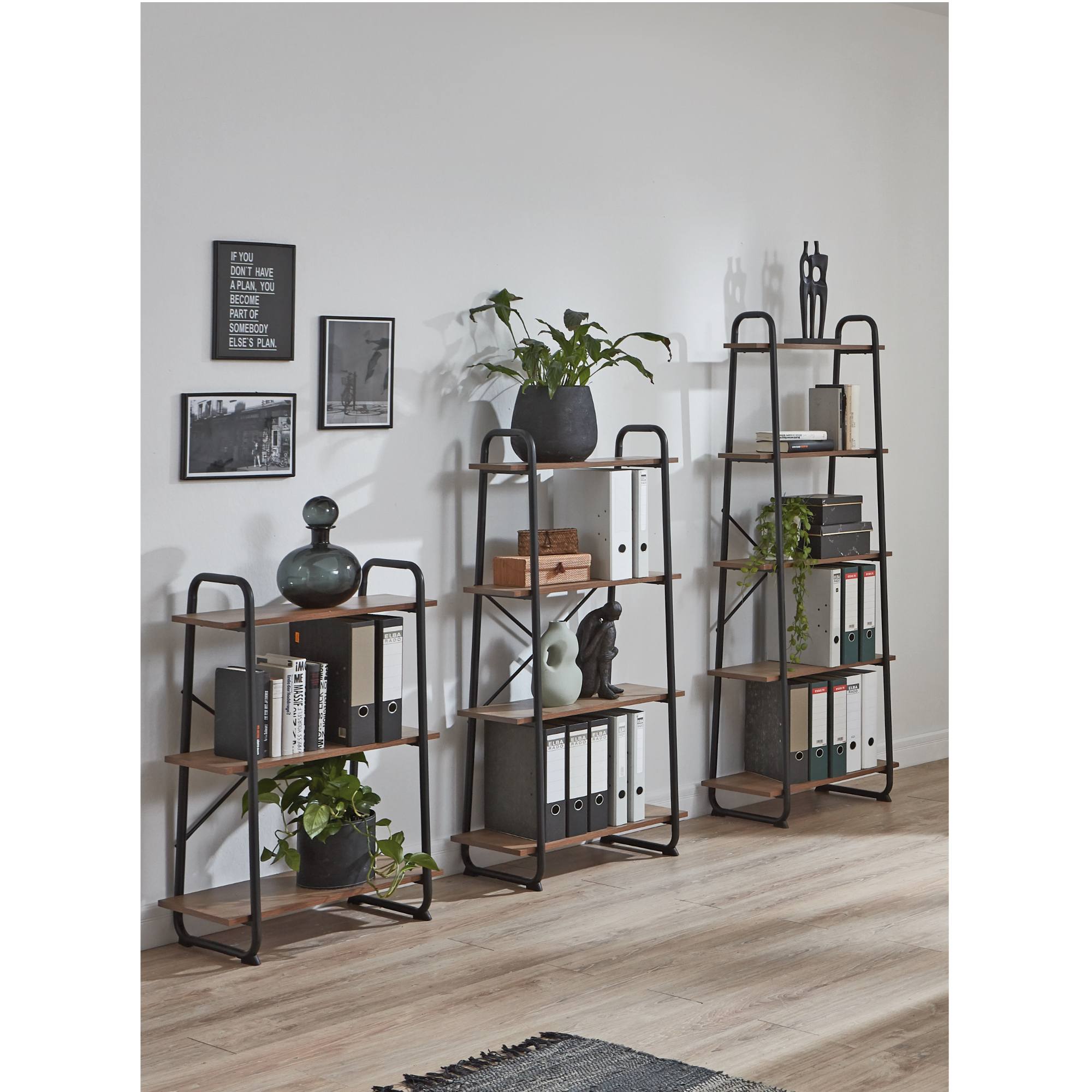 Na tri pevné police regála si môžete uložiť nielen knihy a predmety, ktoré chcete mať neustále po ruke, ale aj dekorácie, ktoré ho skrášlia a premenia na štýlový bytový doplnok.