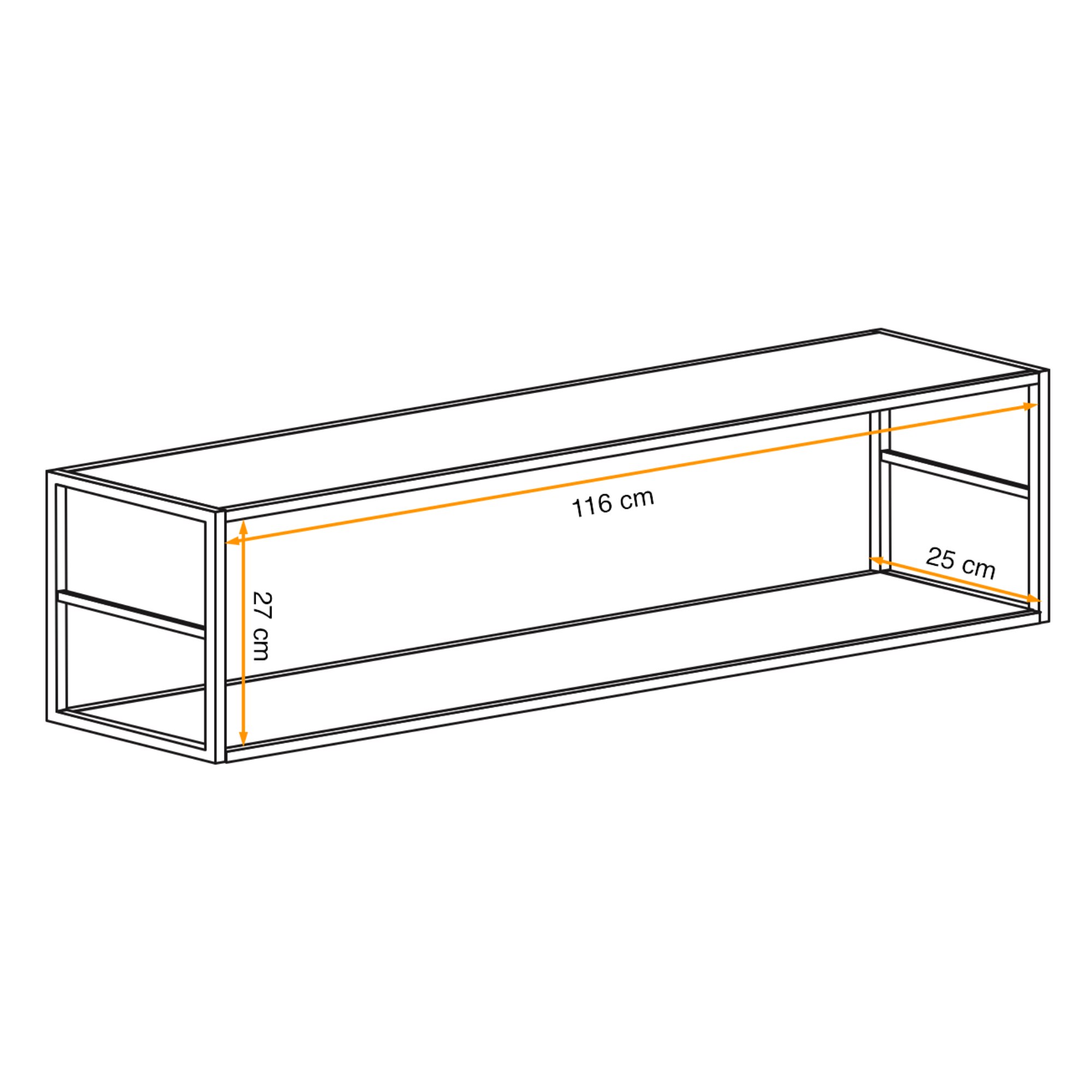 Konštrukcia regála je vyrobená z kovu v čiernej farbe. Dno aj vrchná doska sú z laminovaného dreveného materiálu. Vďaka šírke 120 cm ponúka dostatočný úložný priestor. Regál MATCH RM7 dokáže obstáť sám za seba, perfektne ale zastane aj funkčný prvok obývacej steny z nábytkovej série MATCH.