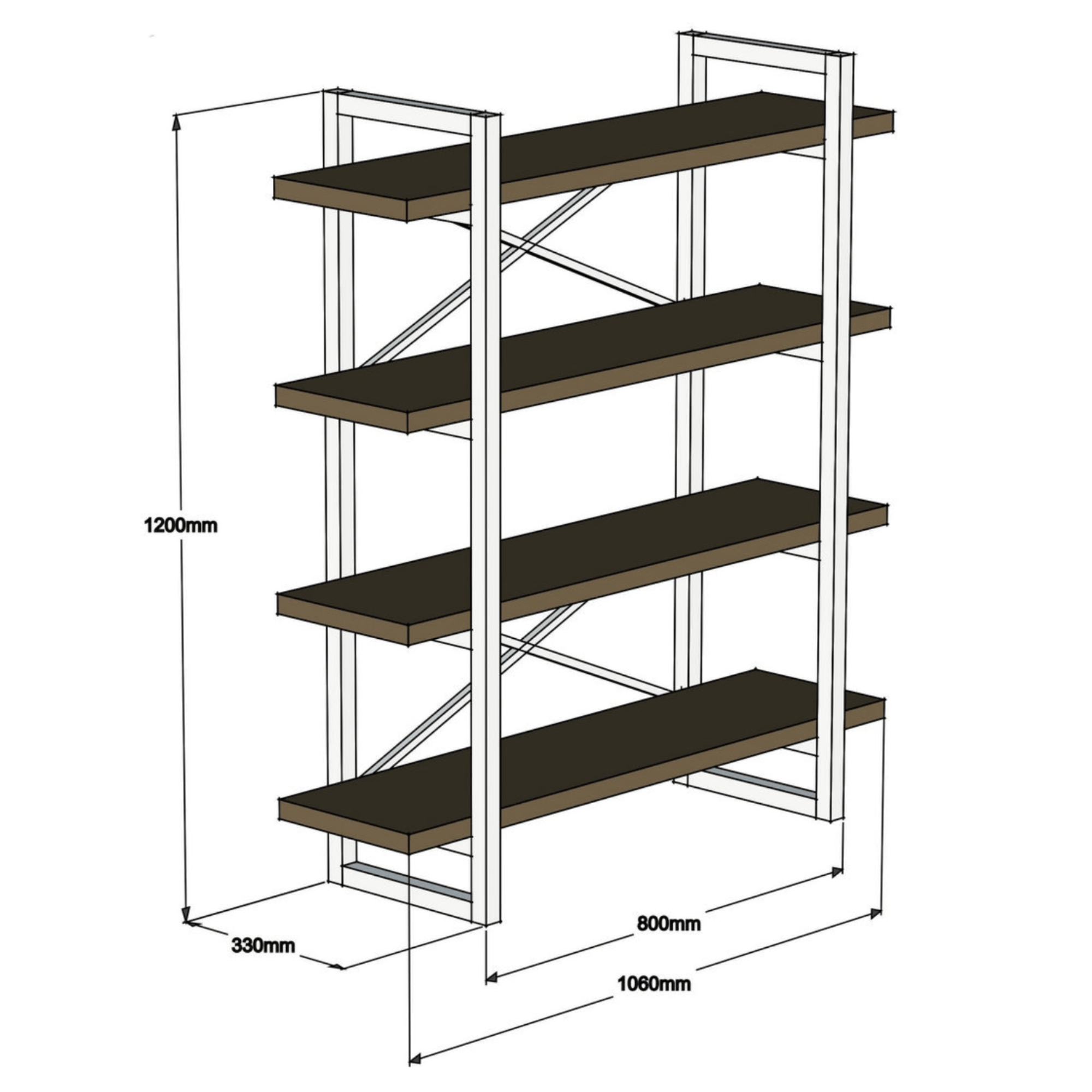 Základňu regála tvorí stabilná, kovová konštrukcia, do ktorej sú zasadené 4 priestranné police. Tie ponúkajú dostatok miesta na uloženie všetkého, čo potrebujete. Vyrobené sú z laminovaného dreveného materiálu, vďaka ktorému sa vám budú dobre udržiavať. Na zadnej strane regála sú za vybranými policami umiestnené praktické zábrany proti vypadnutiu uložených predmetov. Regál poslúži predovšetkým ako priestor na uloženie kníh, rastlín, dekorácií a ďalších drobností. Môžete ho však tiež postaviť voľne do priestoru, jednotlivé police zaplniť a zaujímavo tak rozdeliť miestnosť.
