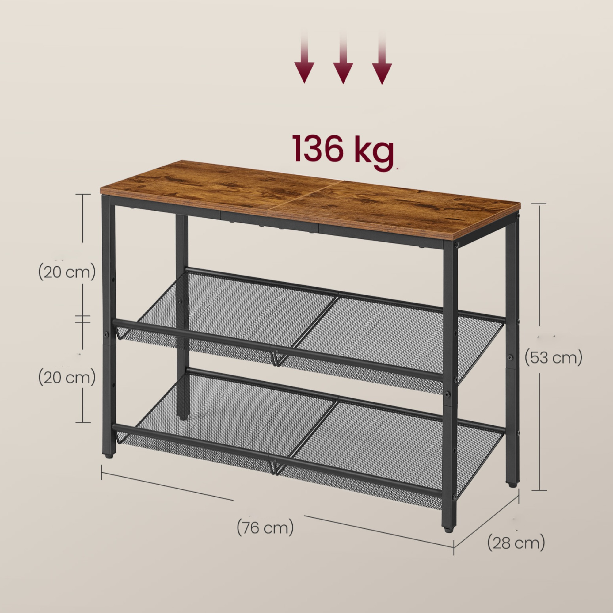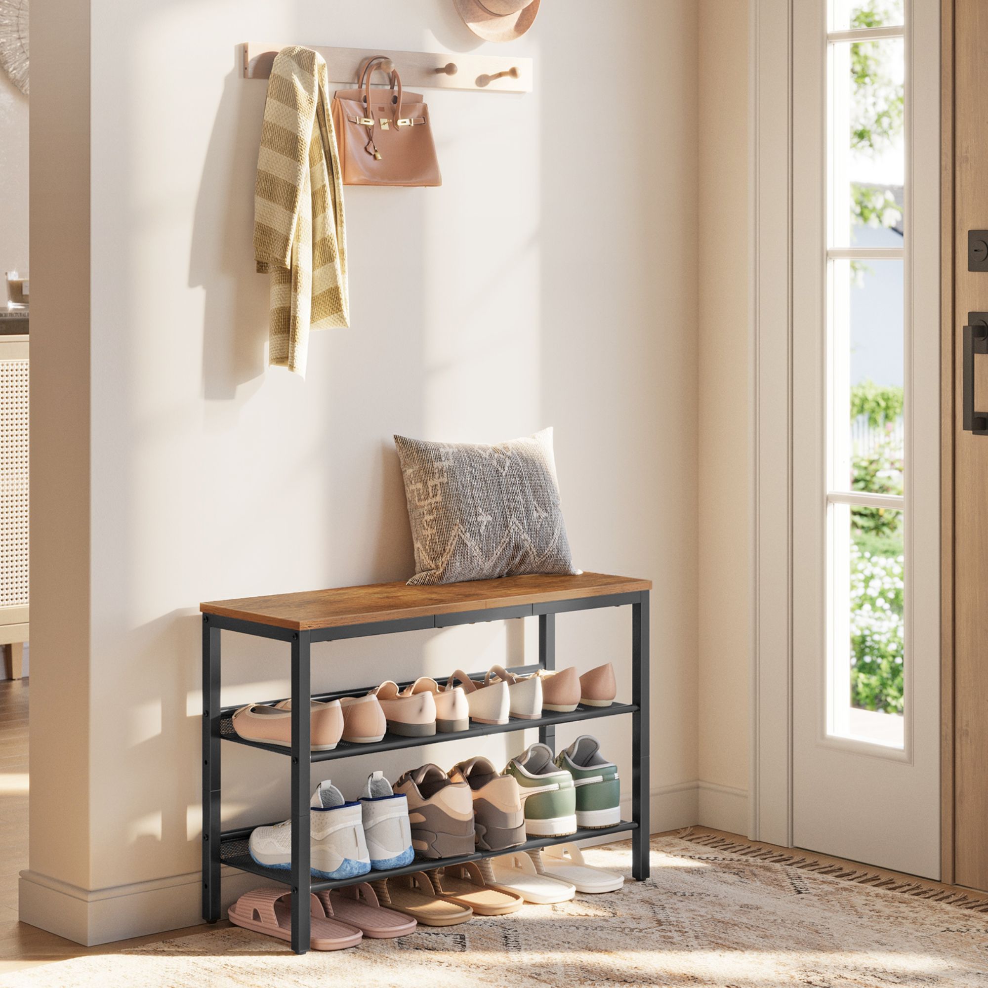 Regál na topánky s lavicou ENTRY 2 vyhotovený v industriálnom štýle v sebe kombinuje miesto na sedenie a úložný priestor.