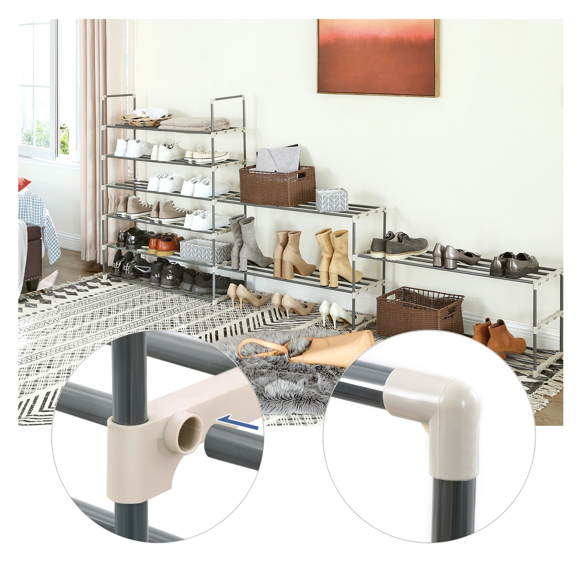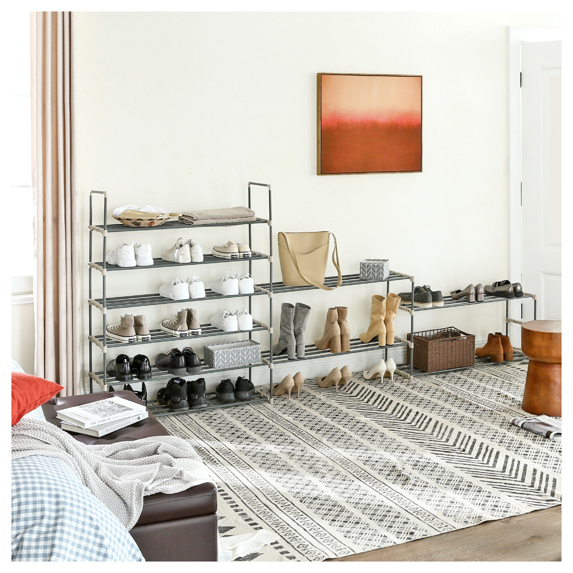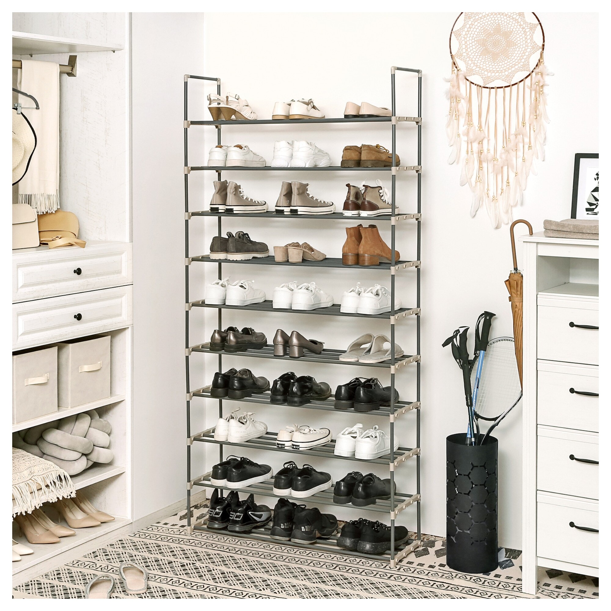 Jednoduchosť, ktorá skvele funguje, tak by sa dal definovať regál na topánky LSA10G. Očarí vás svojou variabilnosťou a stane sa rýchlo nenahraditeľným pomocníkom na udržanie poriadku vo vašej predsieni či hale. Preč budú dni, kedy sa topánky váľali len tak ledabolo po zemi. Do úložného priestoru, ktorý disponuje 10 policami možno uskladniť až 50 párov topánok. Výška každej police je 20 cm, čím vzniká priestor na topánky akejkoľvek veľkosti. Variabilná konštrukcia umožňuje regál na topánky zostaviť podľa potreby. Stojan na topánky si môžete nastaviť podľa svojich predstáv. Rozdeliť na dva regály? Alebo už máte iný nápad?