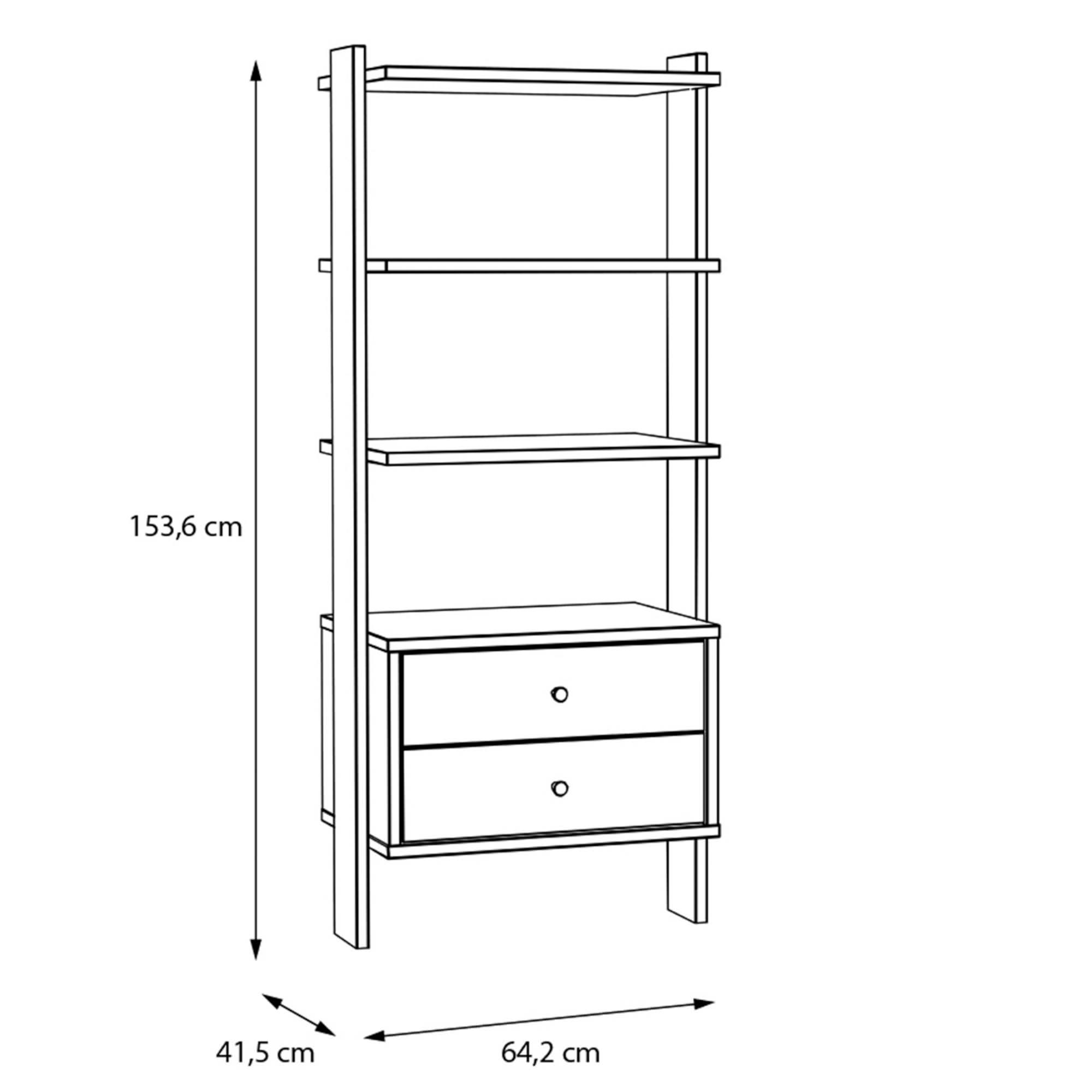 Regál ponúka dostatok miesta na prehľadné uloženie najrôznejších predmetov v podobe 3 vložených políc a 2 priestranných zásuviek. Vďaka svojmu vysokému a užšiemu vyhotoveniu skvele využíva vertikálny priestor a šetrí tak cenné miesto v interiéri. Jeho konštrukcia je vyrobená z laminovaného dreveného materiálu nenáročného na údržbu.