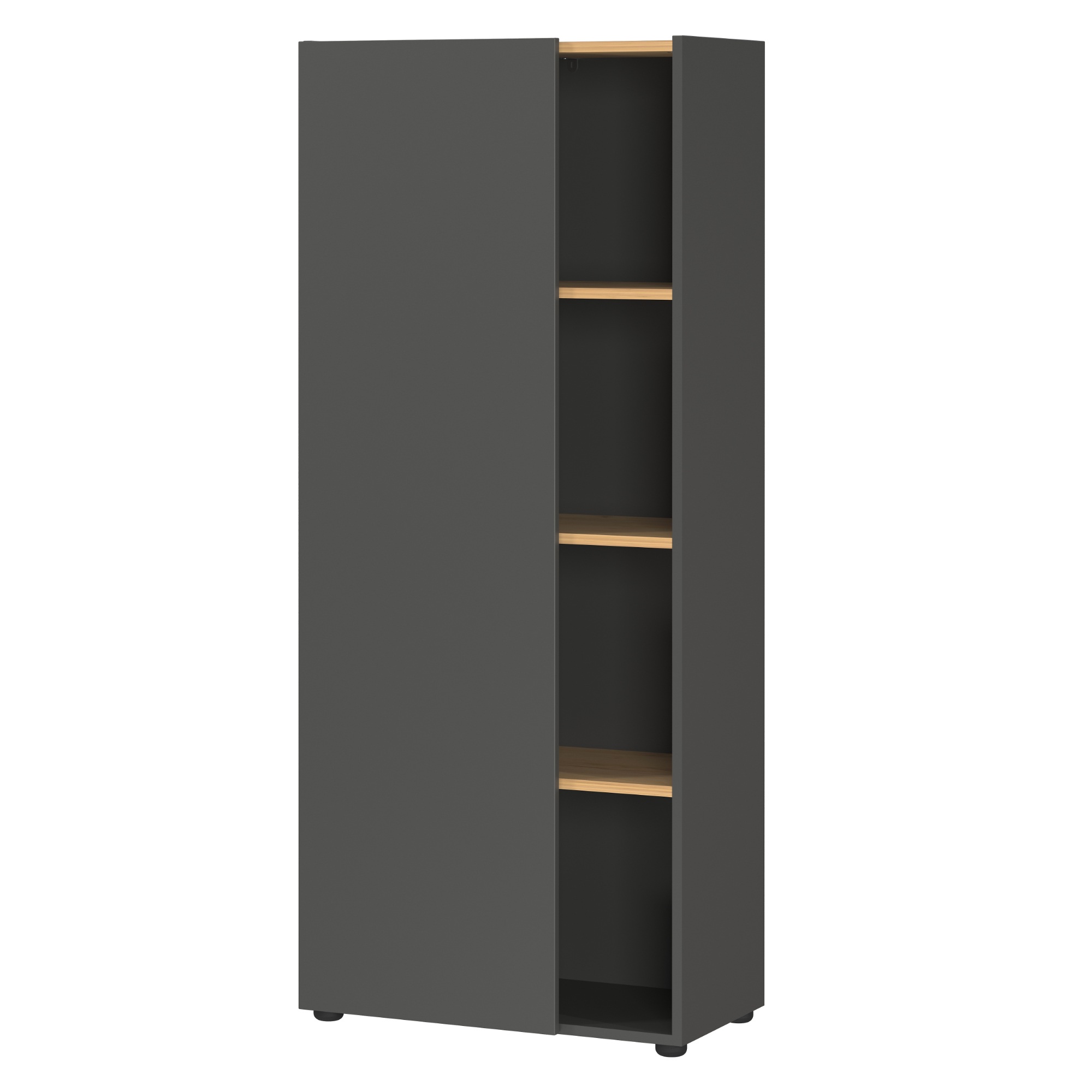 Jeho súčasťou sú 3 vložené police, na ktoré si môžete uložiť knihy a zakladače alebo vystaviť svoje obľúbené dekorácie. Regál je čiastočne uzatvárateľný bezrúčkovými dvierkami.