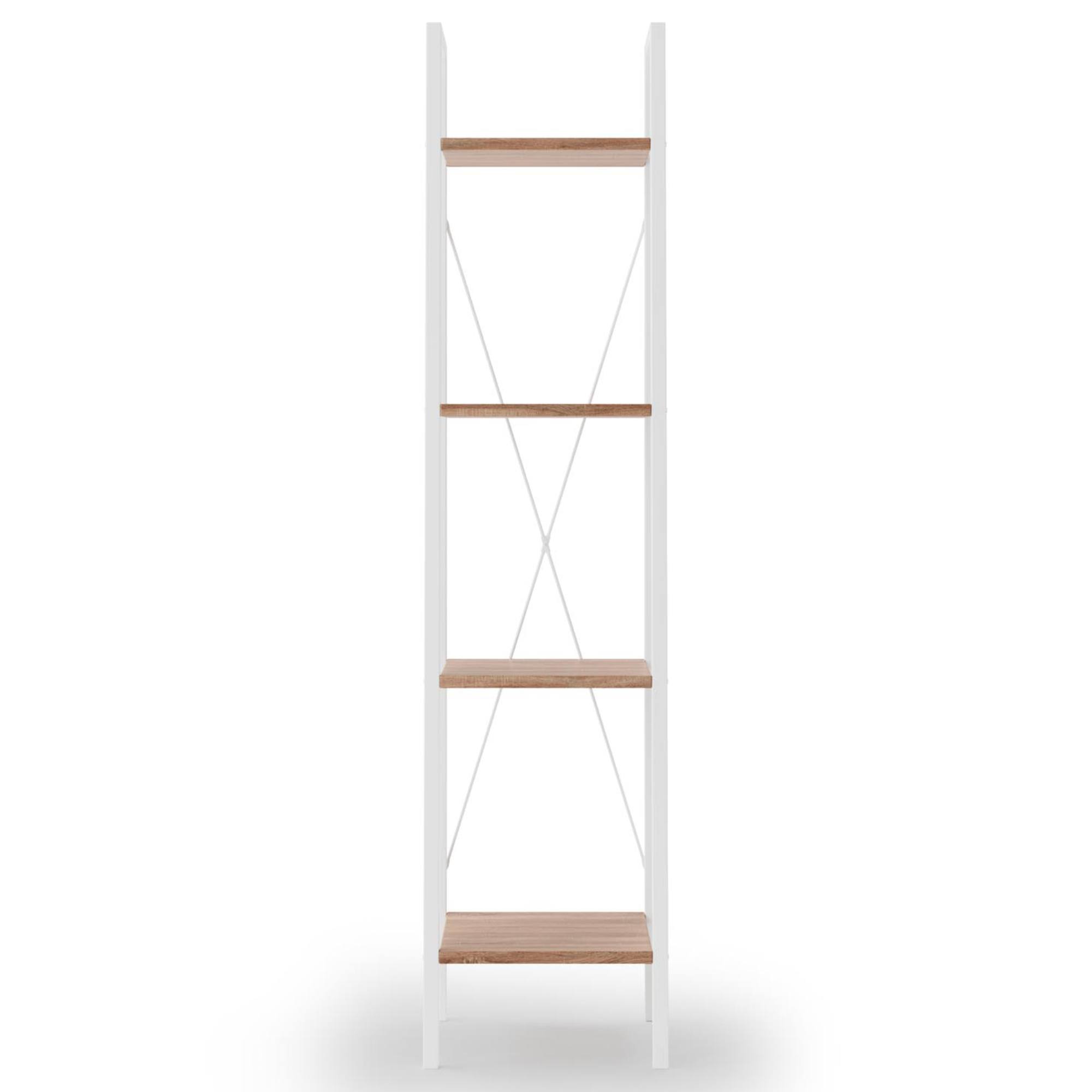 Kombinácia práškovo lakovaného kovu a laminovaného dreveného materiálu v prírodnom dekore je ukážkou jednoduchého a praktického spracovania. Vďaka užším rozmerom a perfektnému využitiu vertikálneho priestoru ho ľahko umiestnite aj do menších priestorov. Aj napriek menšej veľkosti ponúka dostatok odkladacieho miesta v podobe 4 vložených políc. Zo zadnej strany je regál vybavený bezpečnostným prekrížením proti vypadnutiu predmetov z regála.