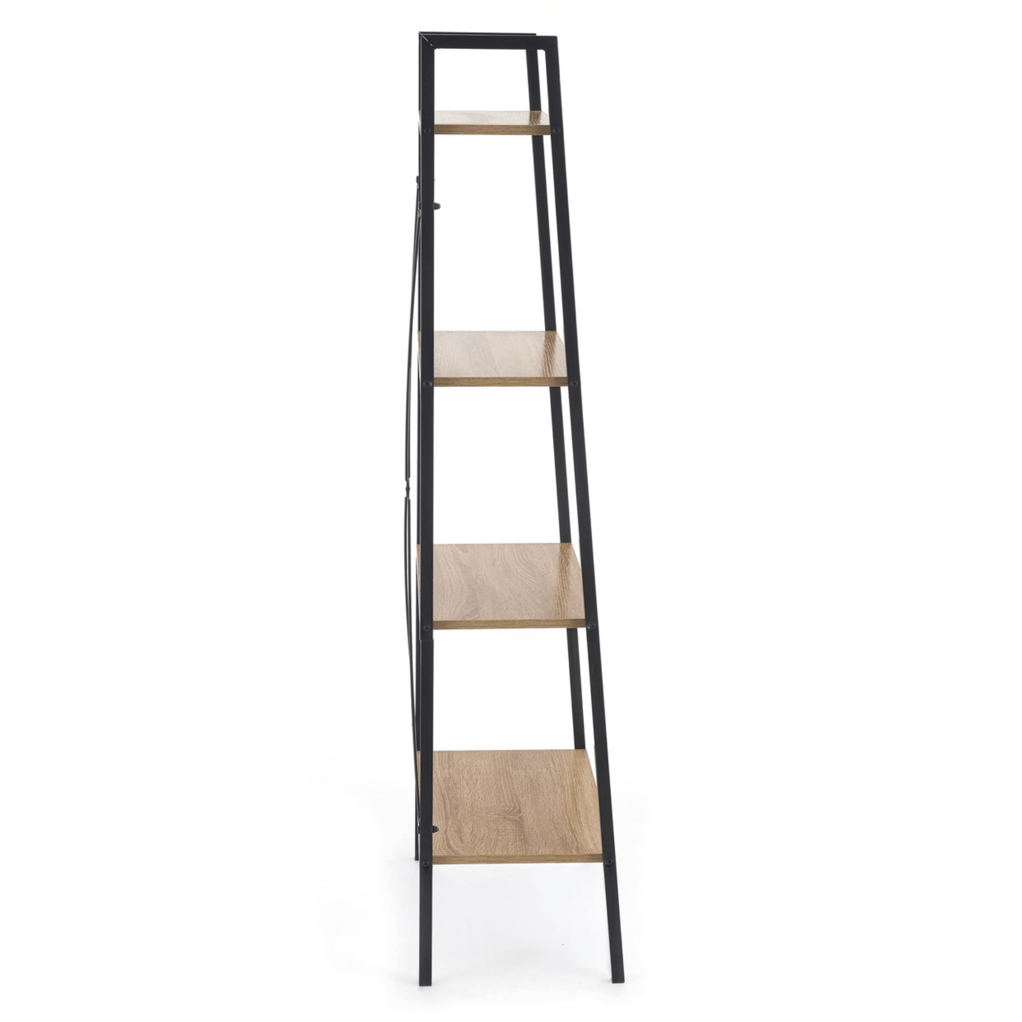 Kombinácia práškovo lakovaného kovu a laminovaného dreveného materiálu v prírodnom dekore je ukážkou jednoduchého a praktického spracovania. Vďaka užším rozmerom a perfektnému využitiu vertikálneho priestoru ho ľahko umiestnite aj do menších priestorov. Aj napriek menšej veľkosti ponúka dostatok odkladacieho miesta v podobe 4 vložených políc. Zo zadnej strany je regál vybavený bezpečnostným prekrížením proti vypadnutiu predmetov z regála.