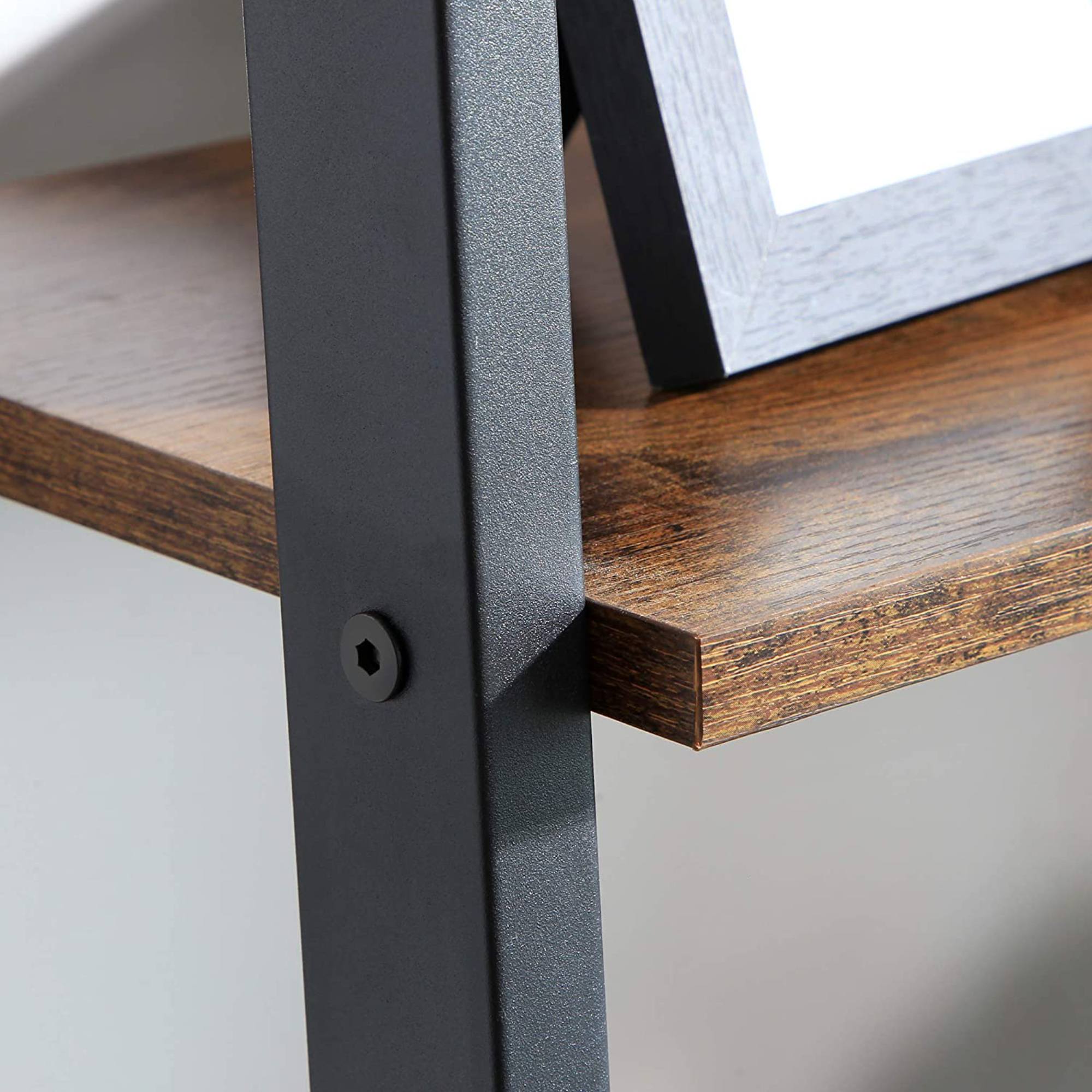 Regál PARGAS v industriálnom vyhotovení, kombinácia čiernej kovovej konštrukcie s rustikálnou hnedou farbou políc, je univerzálnym riešením do akéhokoľvek interiéru. Regál môžete využiť ako knižnicu alebo na umiestnenie izbových rastlín a ďalších dekorácií. K dispozícii máte 5 pevných políc s rovnakou šírkou, ktorých hĺbka sa smerom dole prispôsobuje rozširujúcej sa konštrukcii regála. Jednoduchá a rýchla montáž.