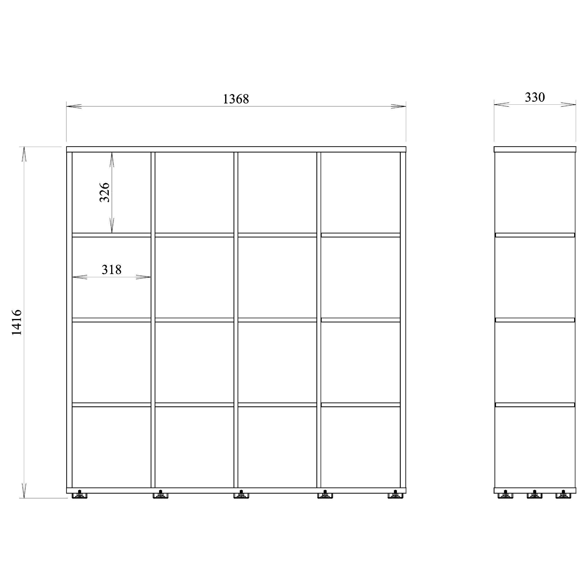 Regál RENA je jednoduchý pomocník pre vašu domácnosť, ktorý využijete prakticky kdekoľvek, či už vo vnútri domácej kancelárii alebo v obývacej izbe, vždy pre neho nájdete svoje miesto. Dvanásť praktických políc poskytuje dostatok priestoru na všetko, čo potrebujete mať po ruke. Regál je vyrobený z kvalitného laminovaného dreveného materiálu a na výber máte z dvoch príjemných farebných variantov.
