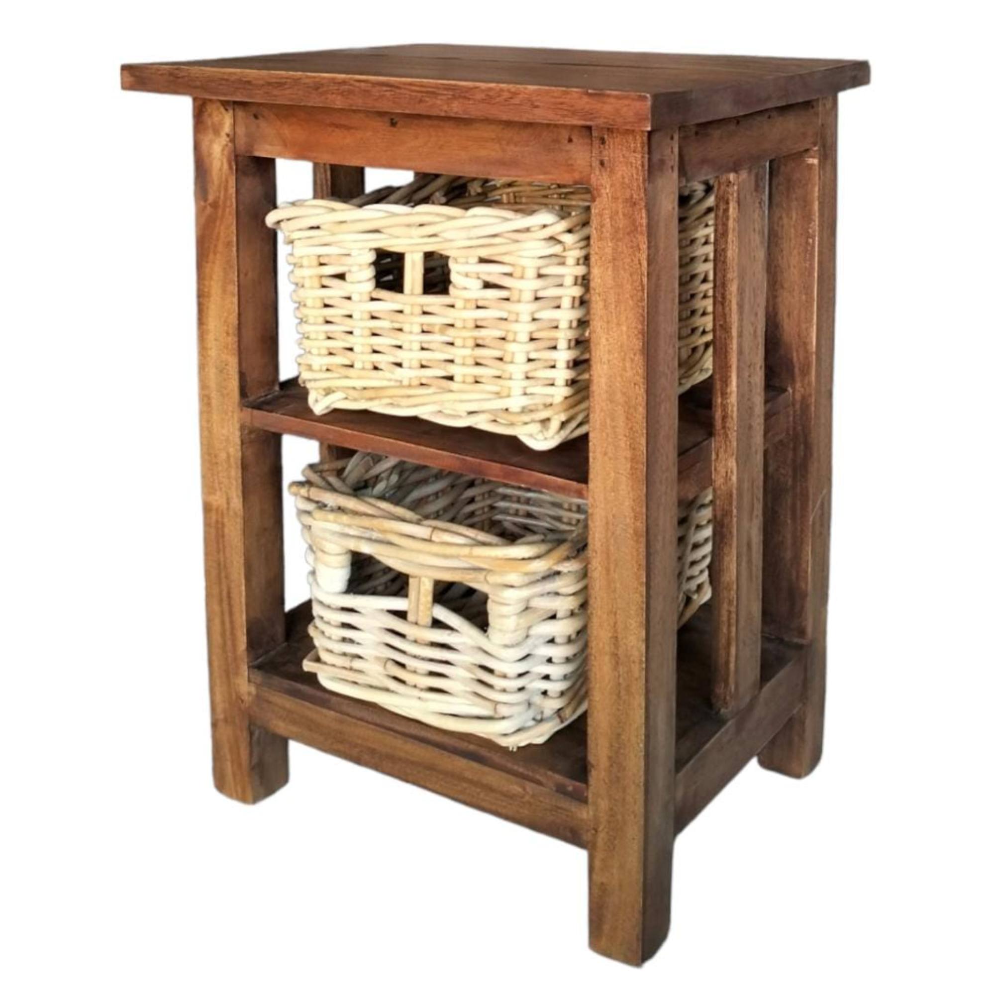 Pevná a stabilná konštrukcia tohto regála je vyrobená z masívneho mahagónového dreva. Súčasťou regála sú 2 ratanové koše, ktoré poskytnú dostatok úložného priestoru na všetky potrebné drobnosti.