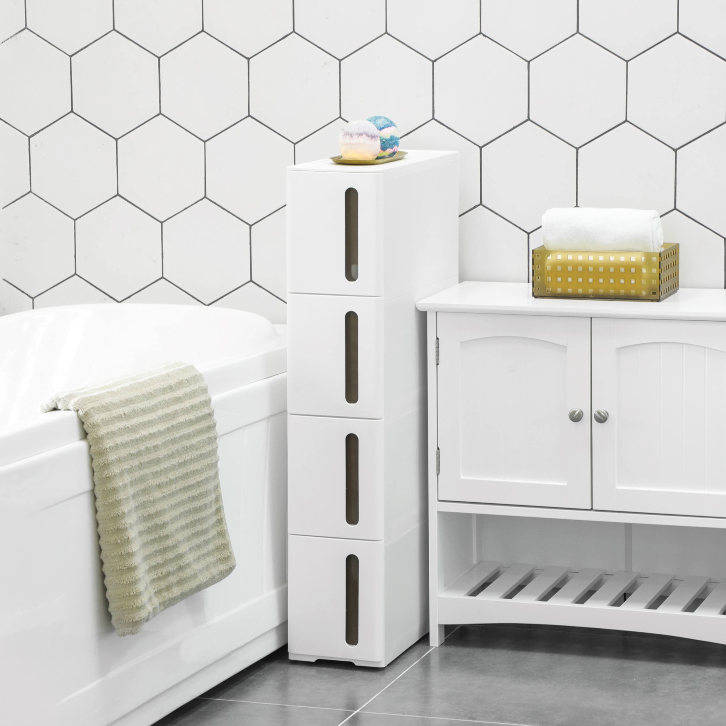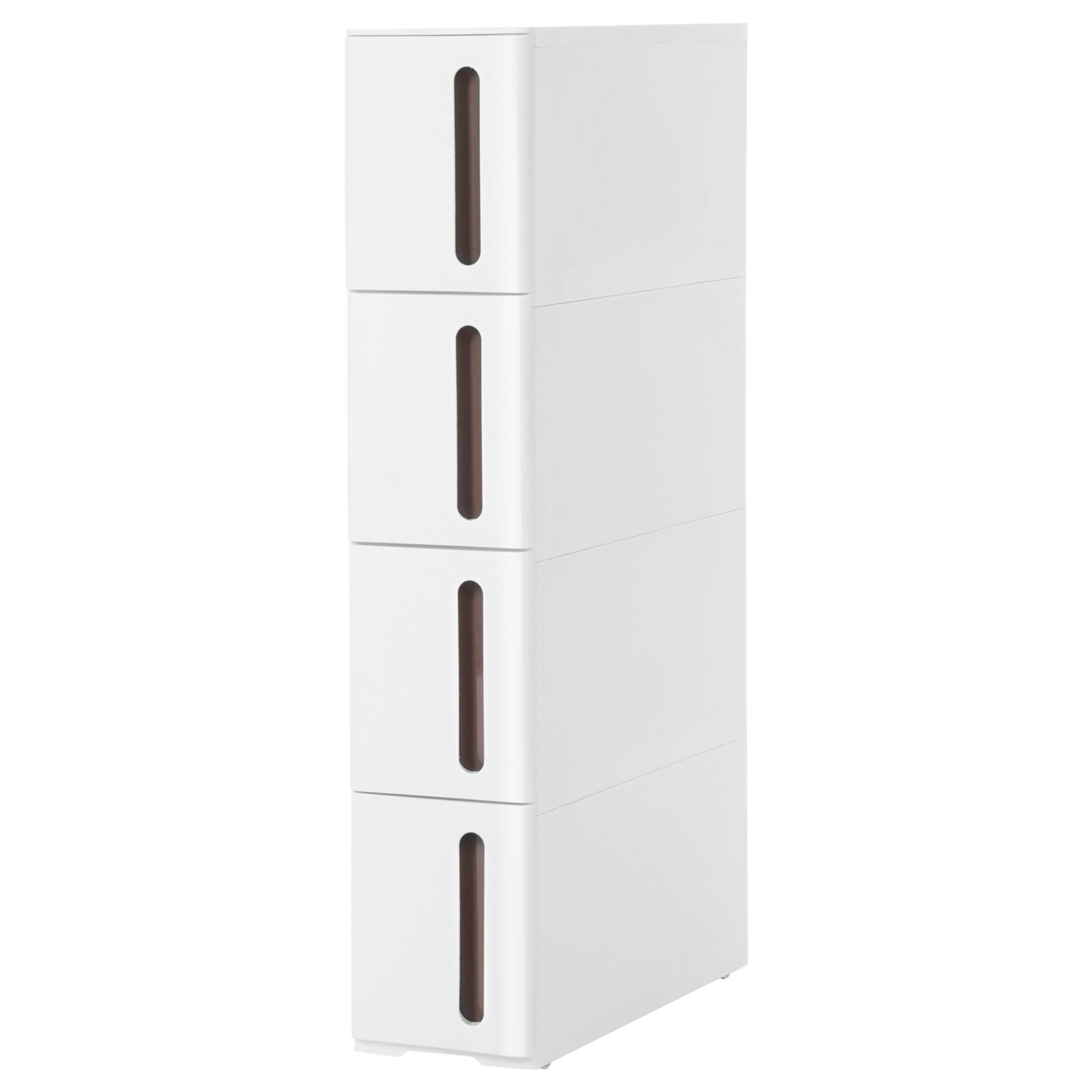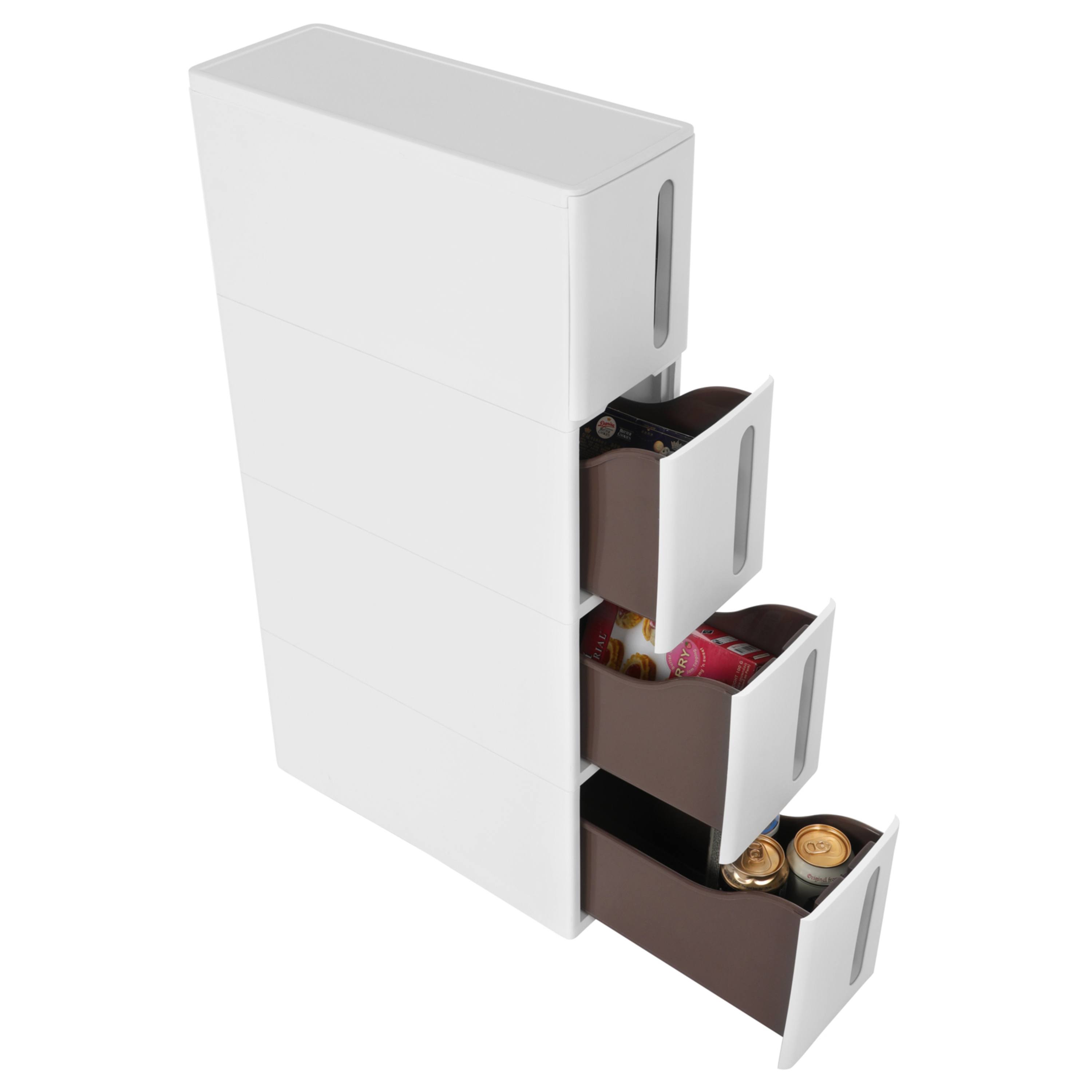 Do 4 výsuvných boxov môžete uložiť napríklad kancelárske pomôcky, kuchynské potreby alebo kozmetiku. Regál je vybavený kolieskami, a tak ho ľahko premiestnite, kamkoľvek budete chcieť.