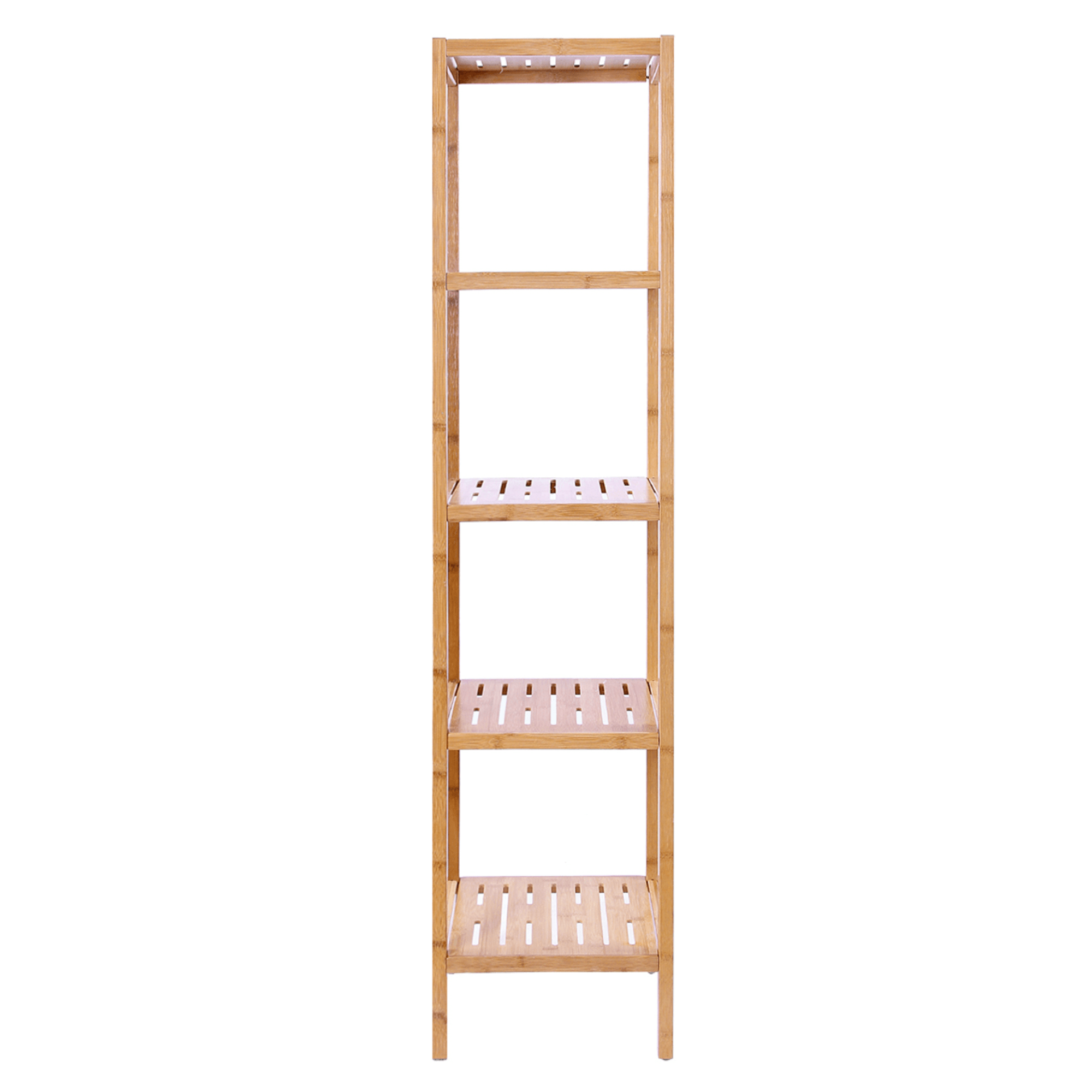 Moderný regál SHELF je vyrobený z kvalitného bambusového dreva a dodá vašej domácnosti čistý, prírodný nádych. Bambus je nielen atraktívny na pohľad, ale aj odolný voči vode a slnečnému žiareniu. Skvele tak kombinuje jednoduchý dizajn a funkčnosť. Regál obsahuje 5 otvorených, vložených políc a ponúka tak dostatok otvoreného odkladacieho priestoru na všetky nevyhnutnosti a dekorácie. Vďaka svojmu tvaru nezaberá toľko cenného miesta a perfektne využíva vertikálny priestor.