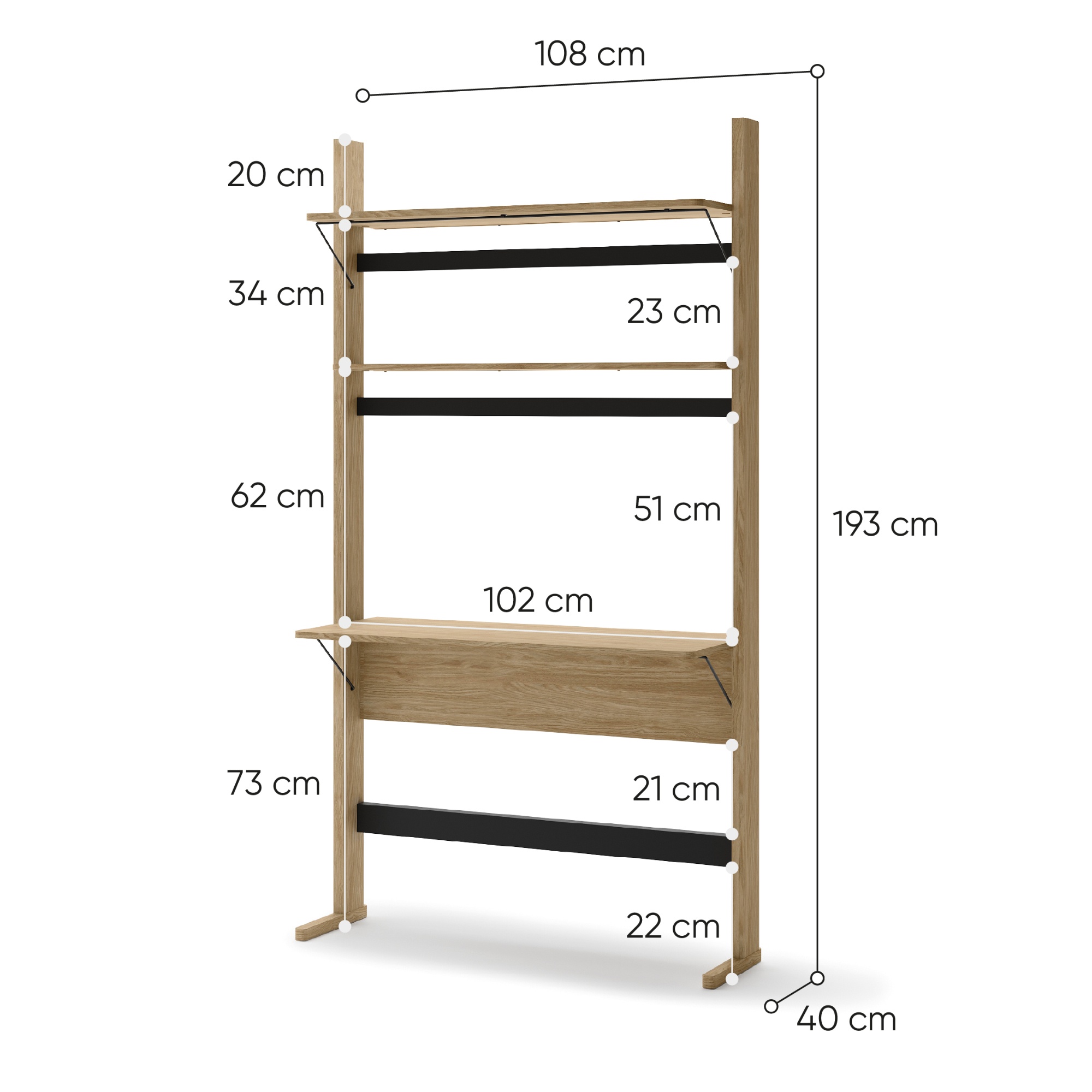 Regál so stolom OLLIE - dub olejovaný/čierna